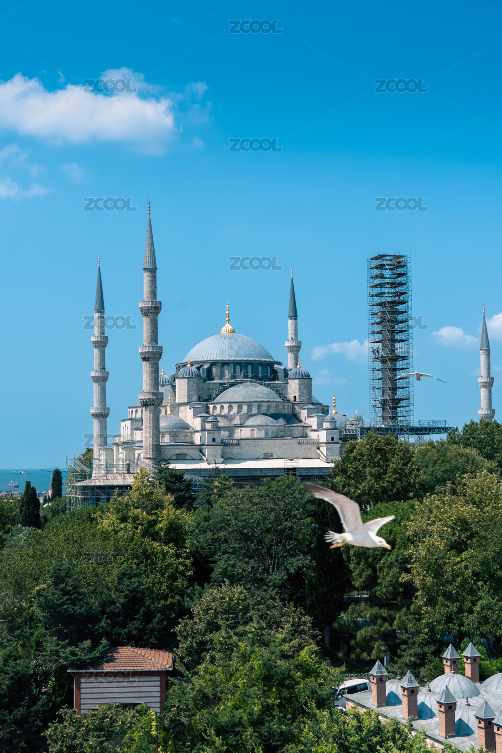 土耳其伊斯坦布尔新索菲亚大教堂海鸥