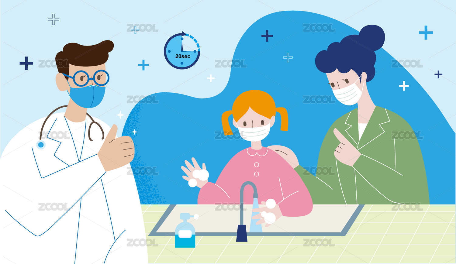 医生,女孩,口罩,病毒,防护,保护,健康,医疗,HEMEDI2020,插画