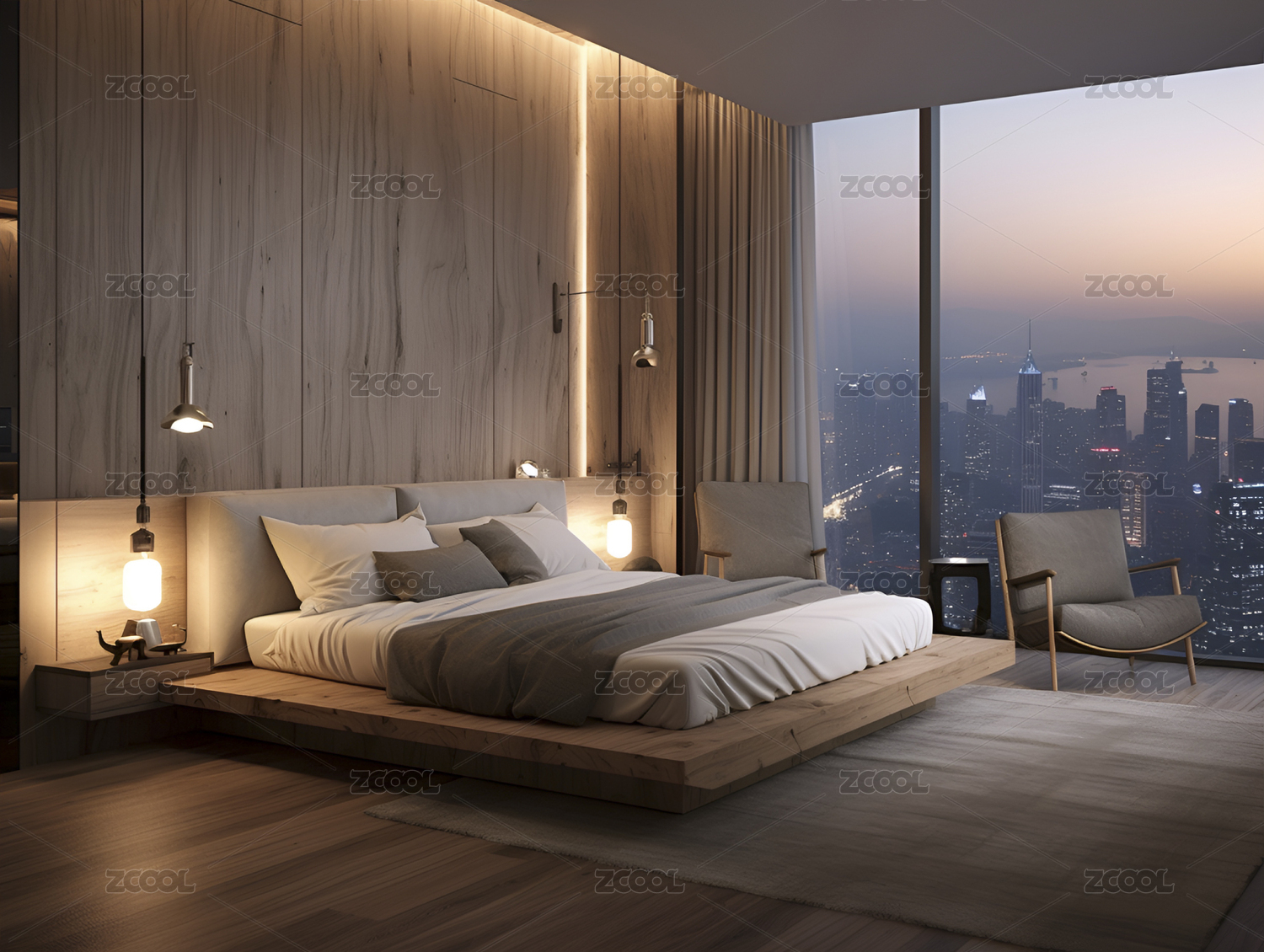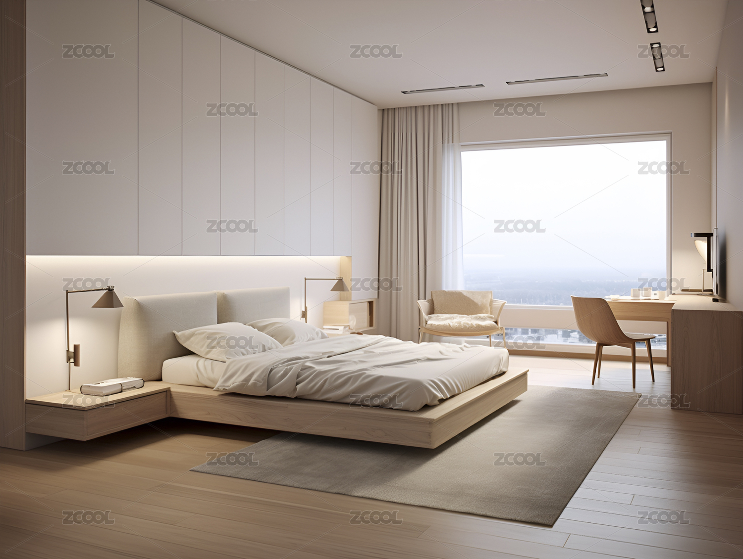 现代,简约,卧室,装修,效果图,室内,设计,家居,床,灯