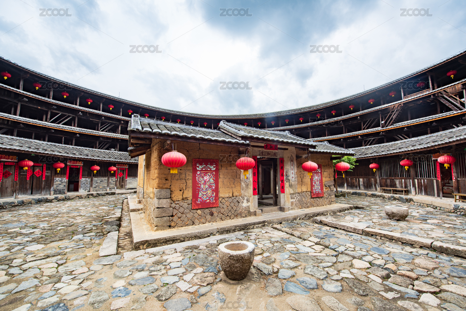 天空,中国,福建,横构图,龙岩,永定,土楼,建筑,居住,圆形