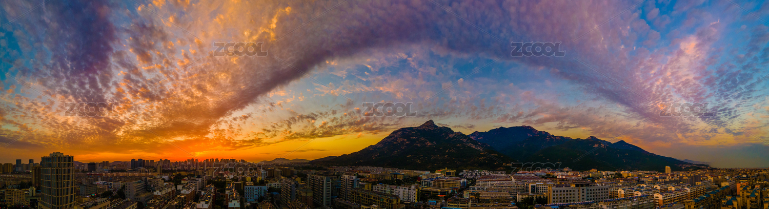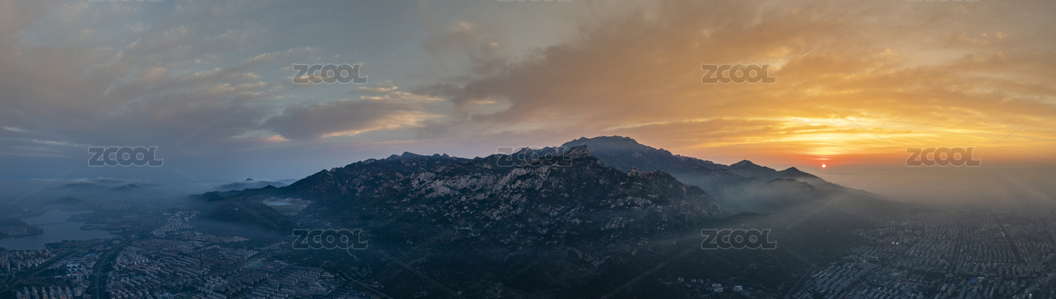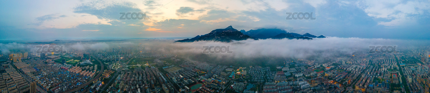山东,泰安,泰山,日出,城市,建筑,鸟瞰,无人机,全景,航拍