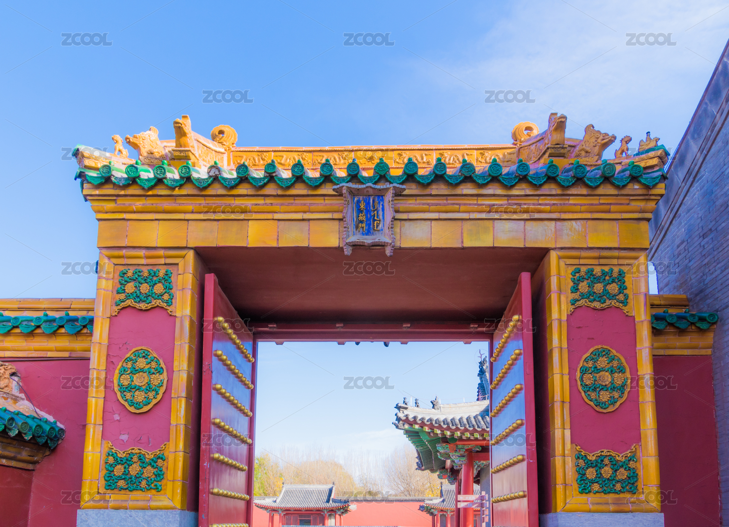 山东省滨州市惠民县武圣园内的中式古典红色庙门