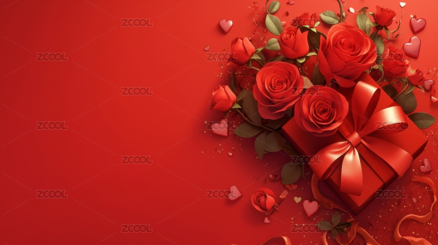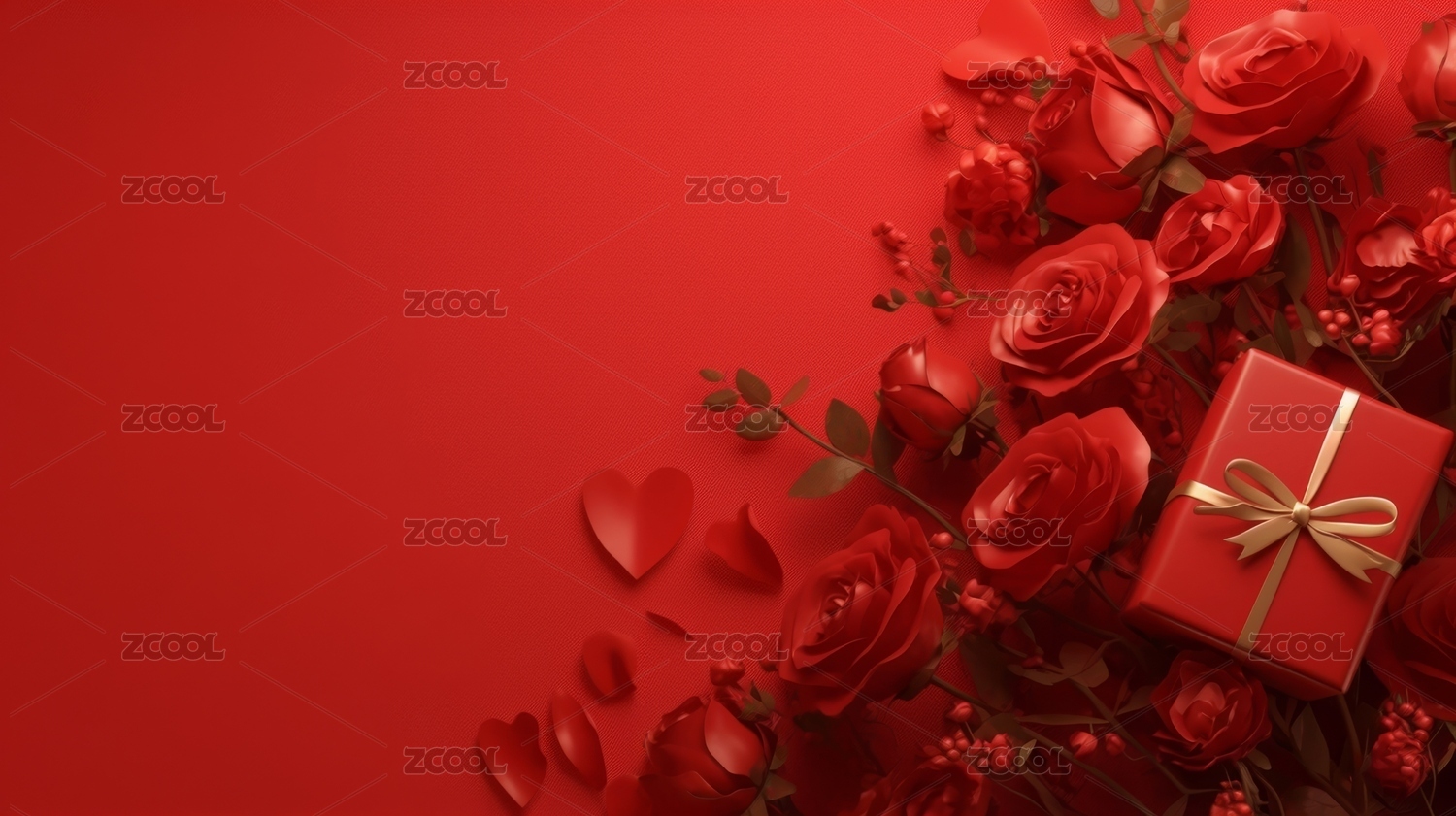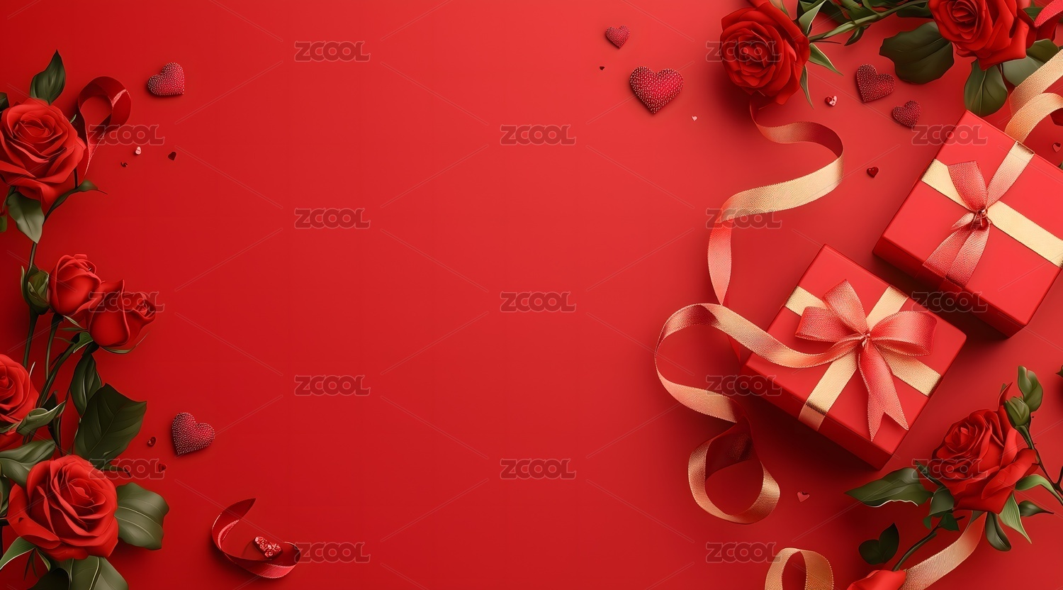 红色背景节日主题的爱心和礼物