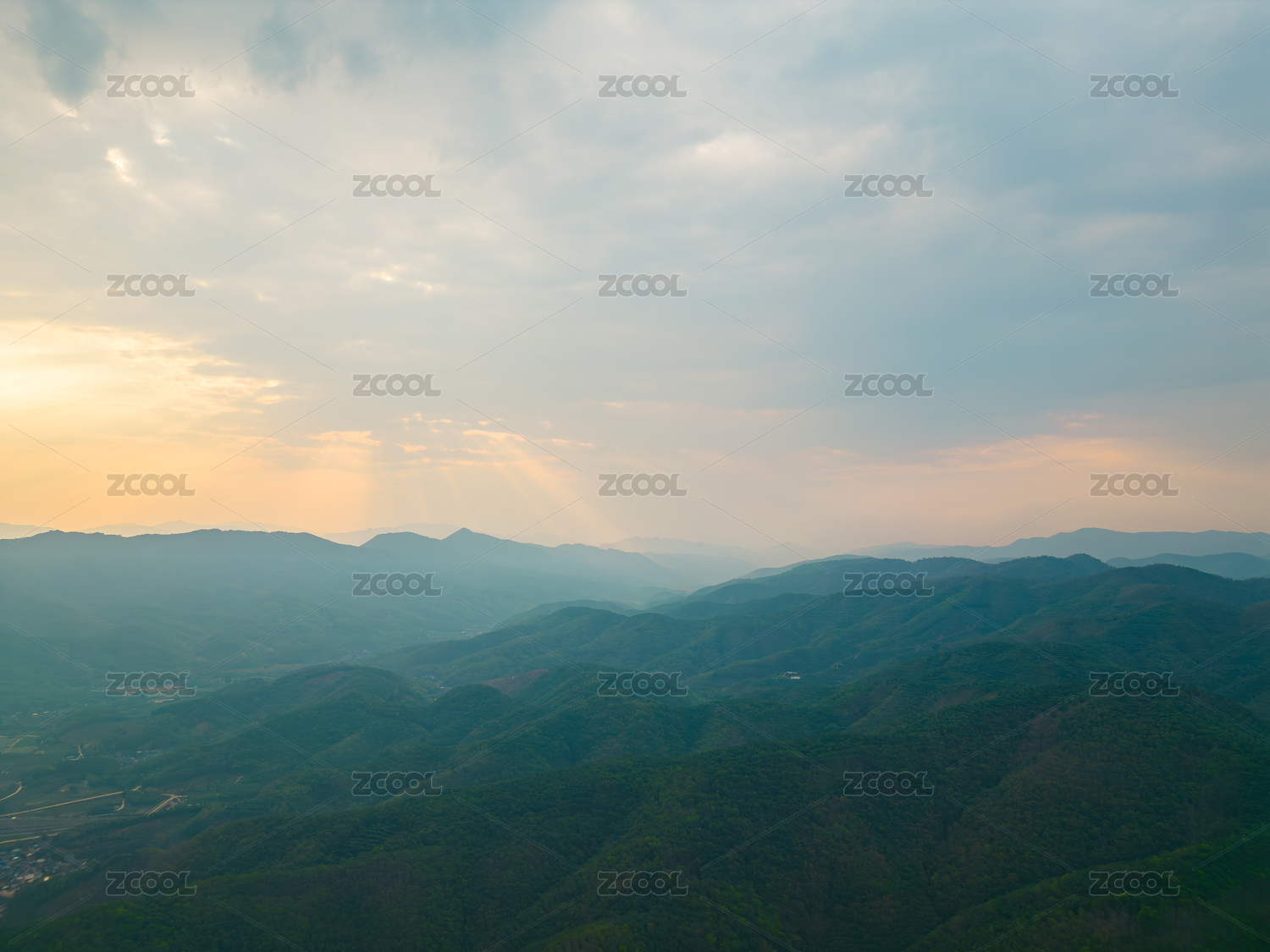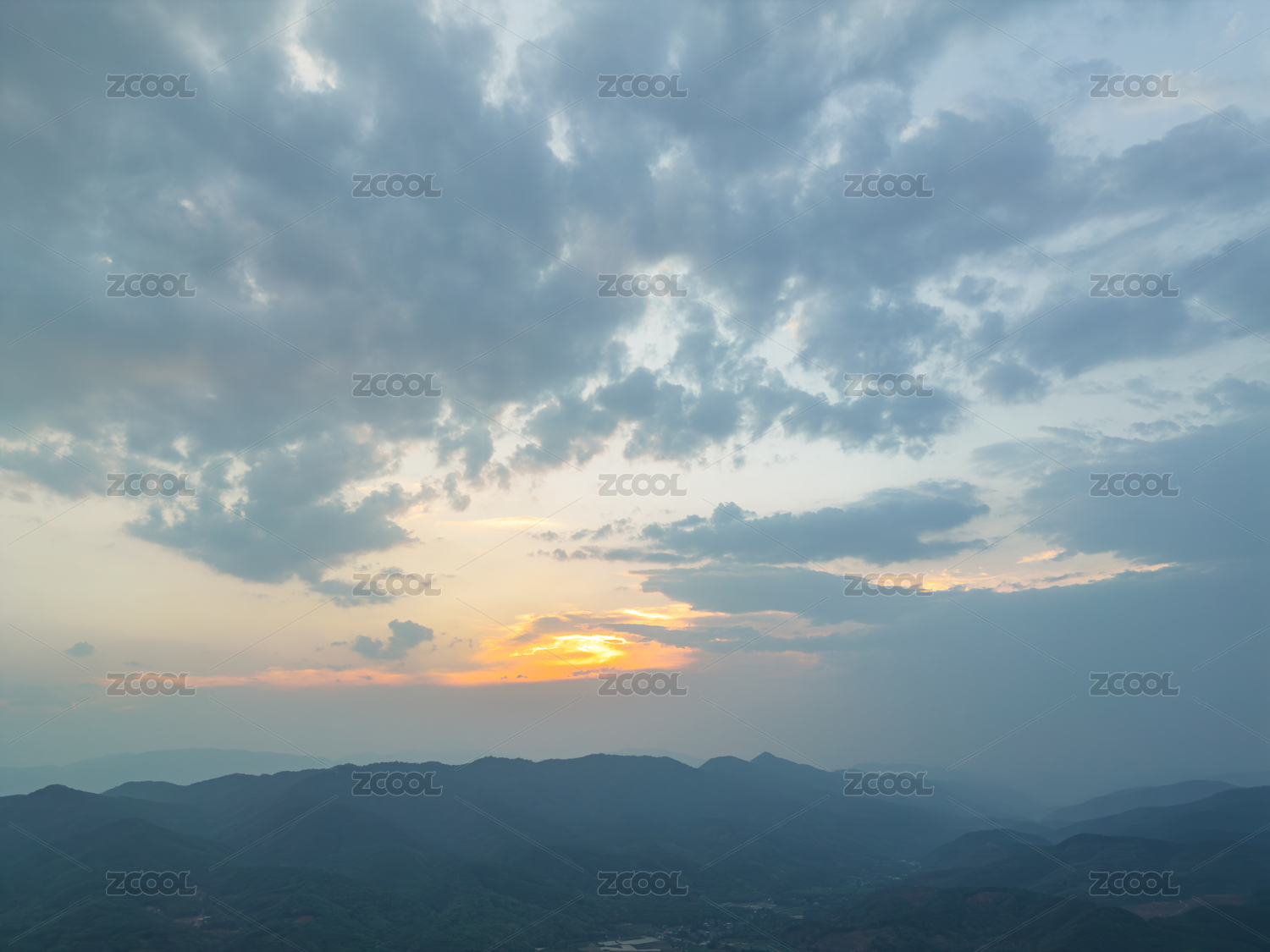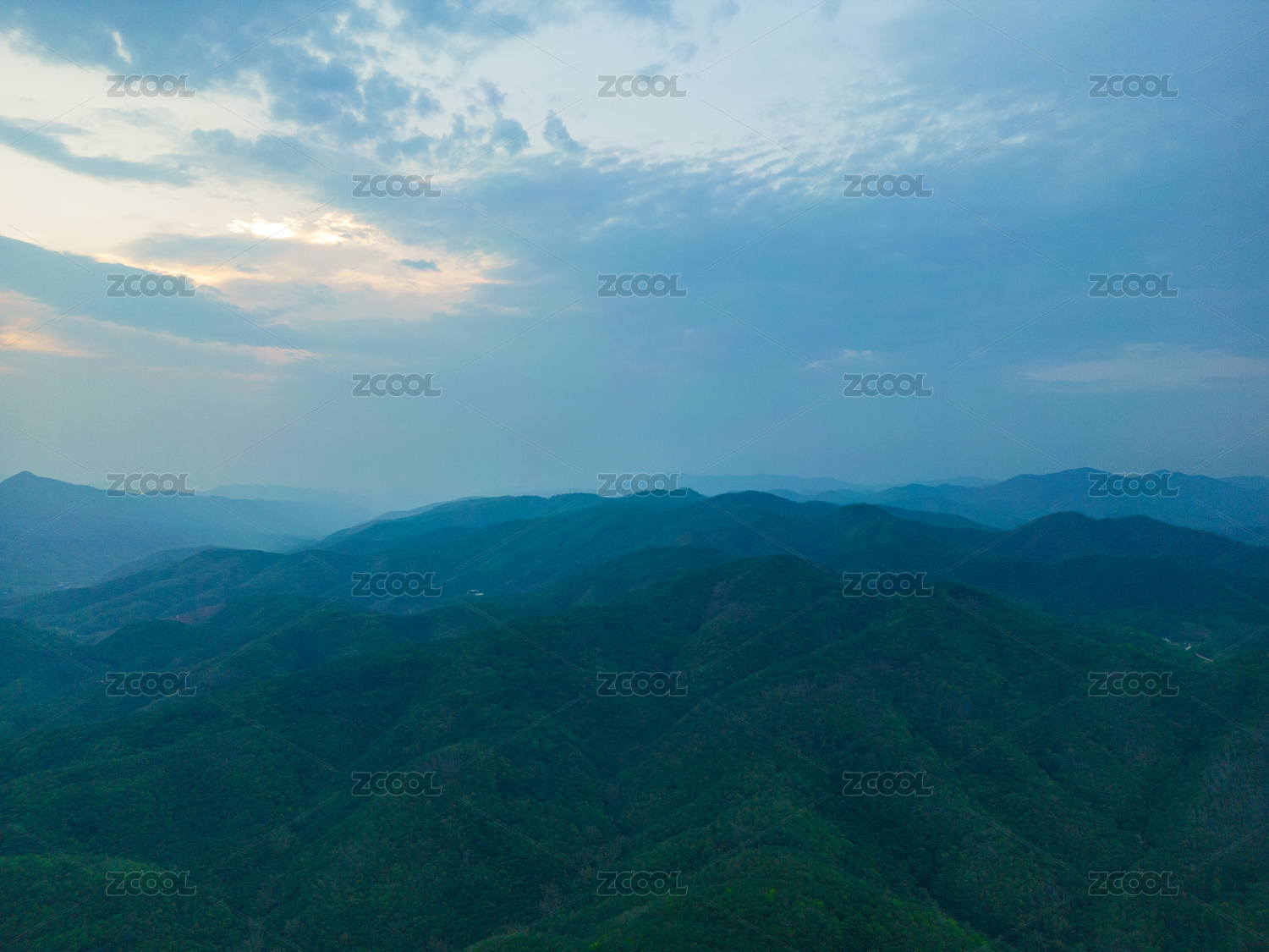 航拍日落时群山对天的景色