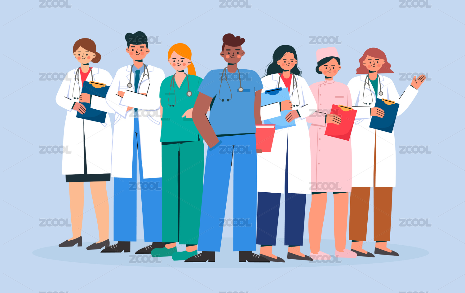 蓝色小清新医疗医生诊断扁平风矢量医学元素