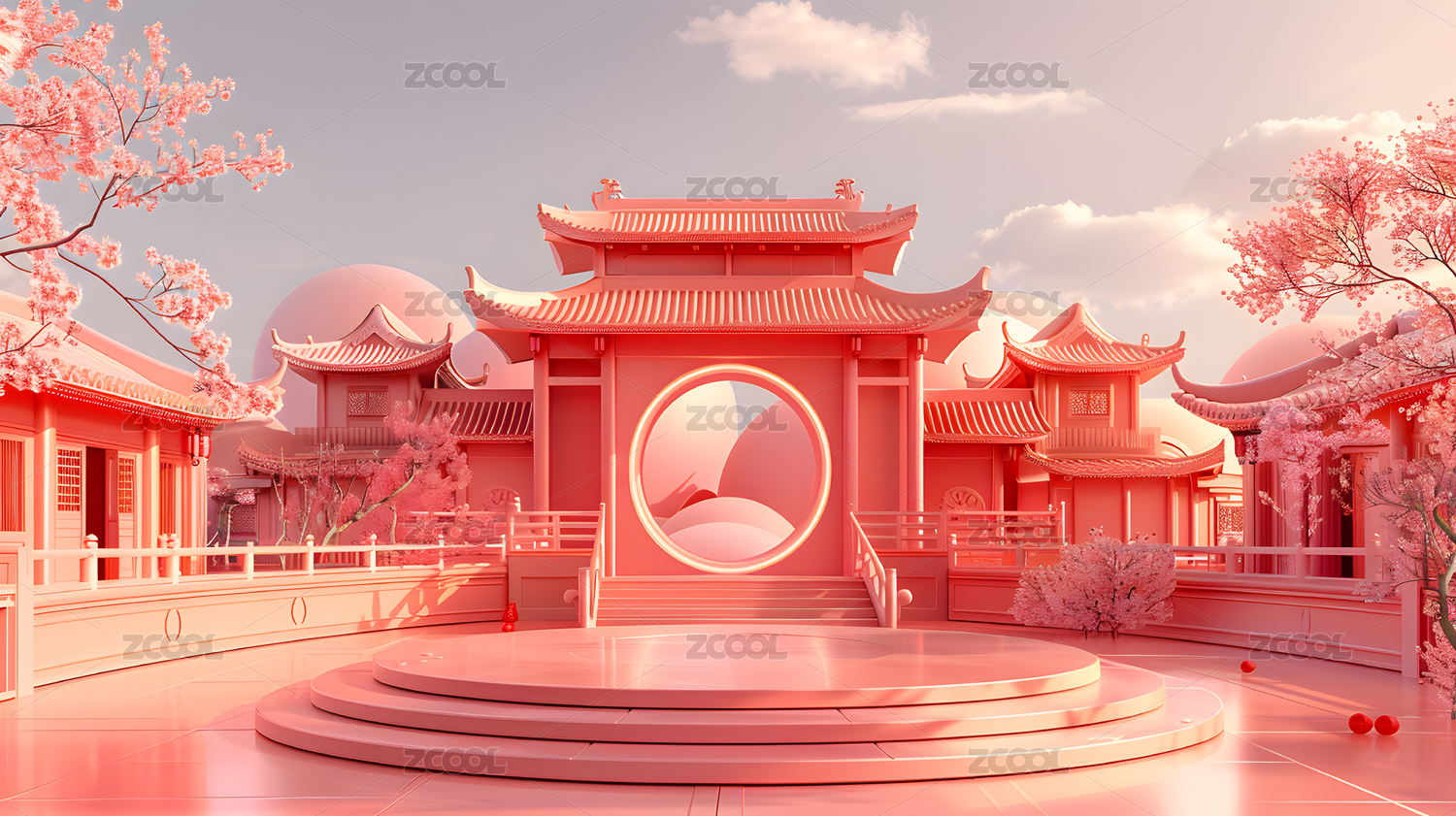 红色,金色,建筑,屋顶装饰,典型,中国式翘角,屋檐,灯笼,中国元素,门框