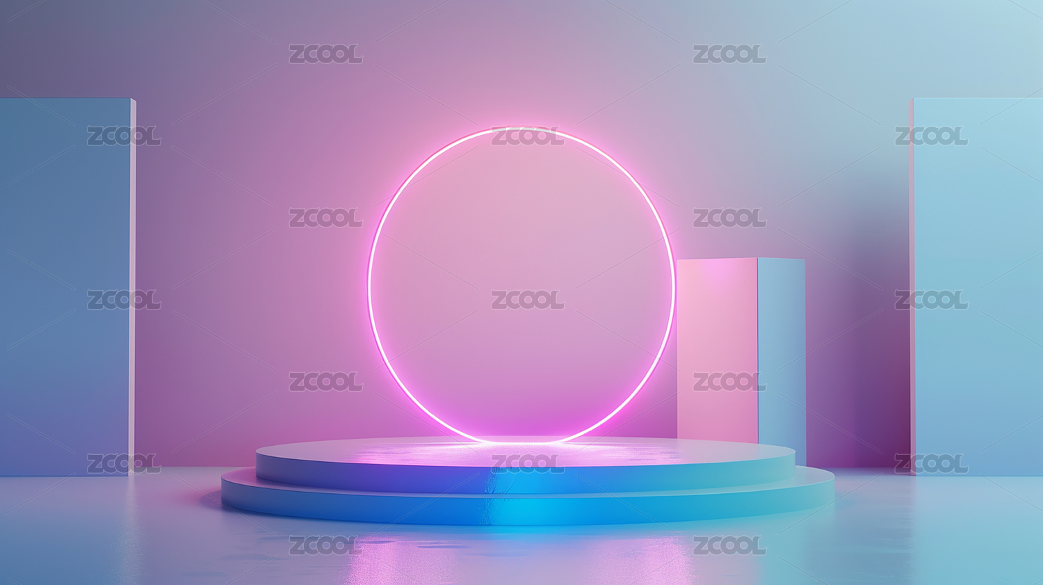 3D酷炫霓虹灯发光室内产品展台背景
