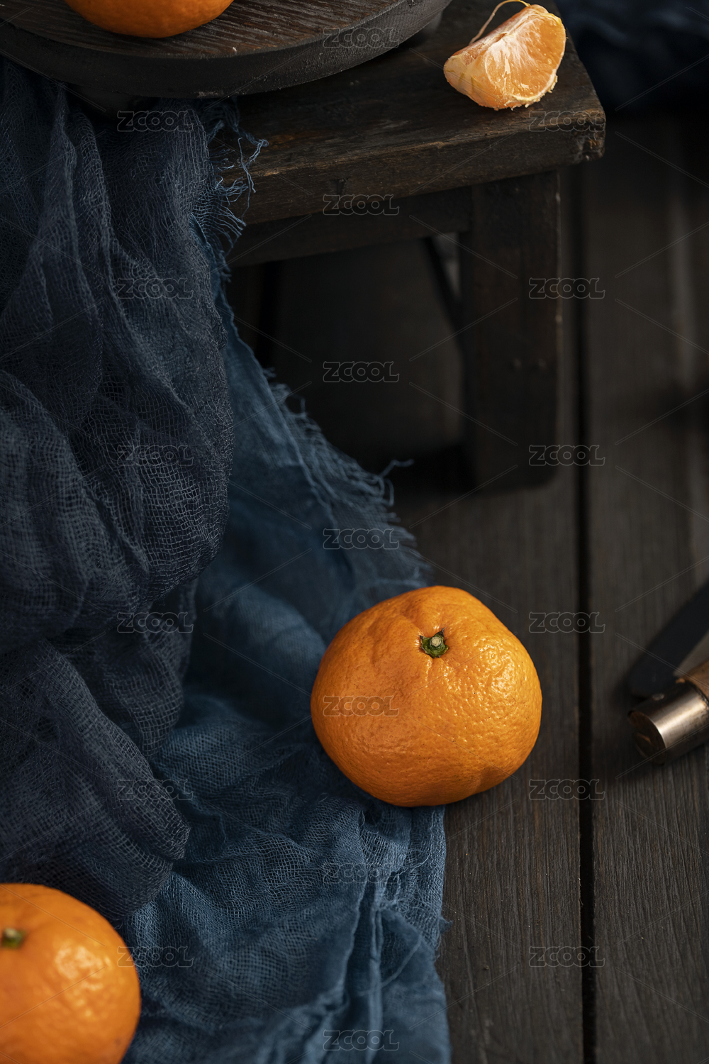 木桌上暗调静物摄影复古木质桌上的黄色桔子