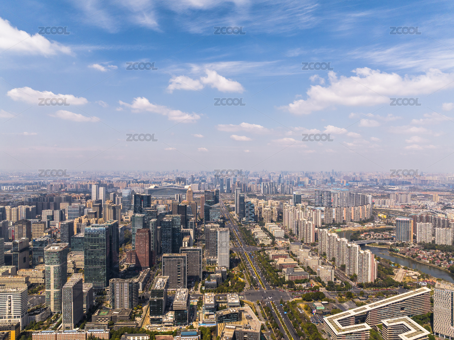 郑州市中心城市天际线俯拍