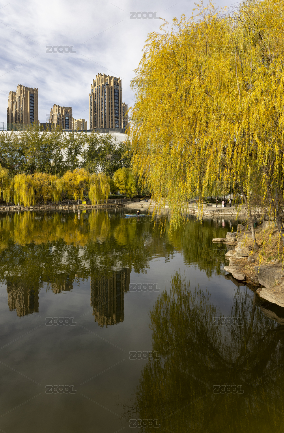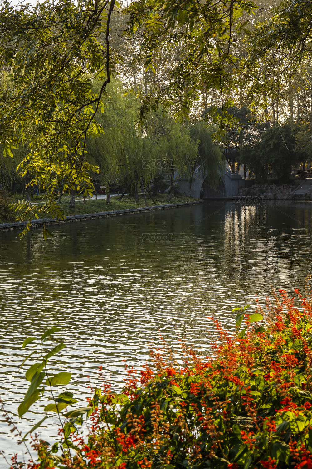 山东省济南市大明湖风景区春日黄昏美丽风光