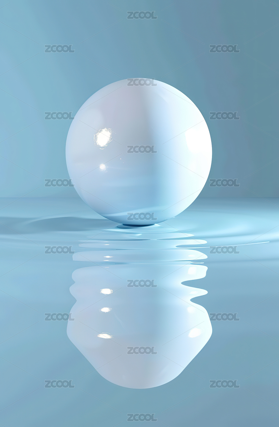 浅蓝色球体立于泛起涟漪水面