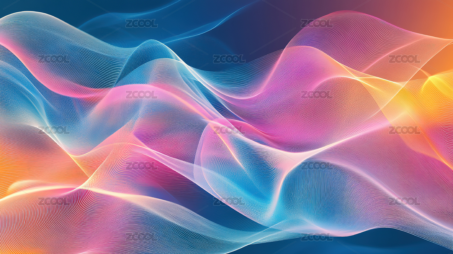 彩色蓝色紫色发光粒子波浪抽象科技背景