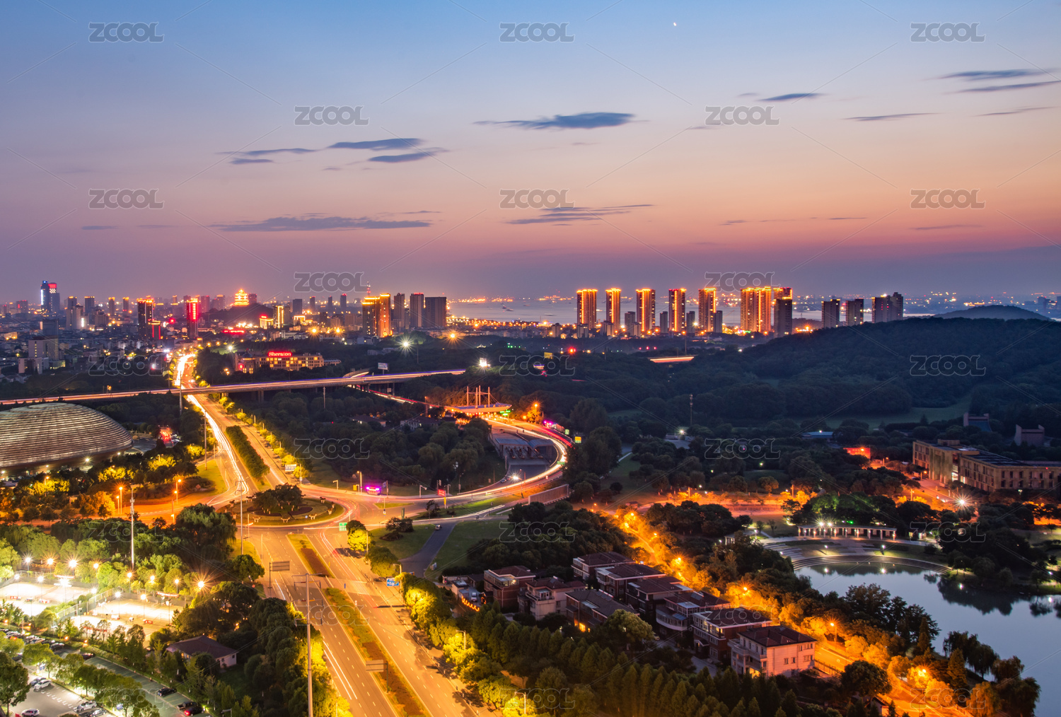 城市公园夜景-长沙西湖公园