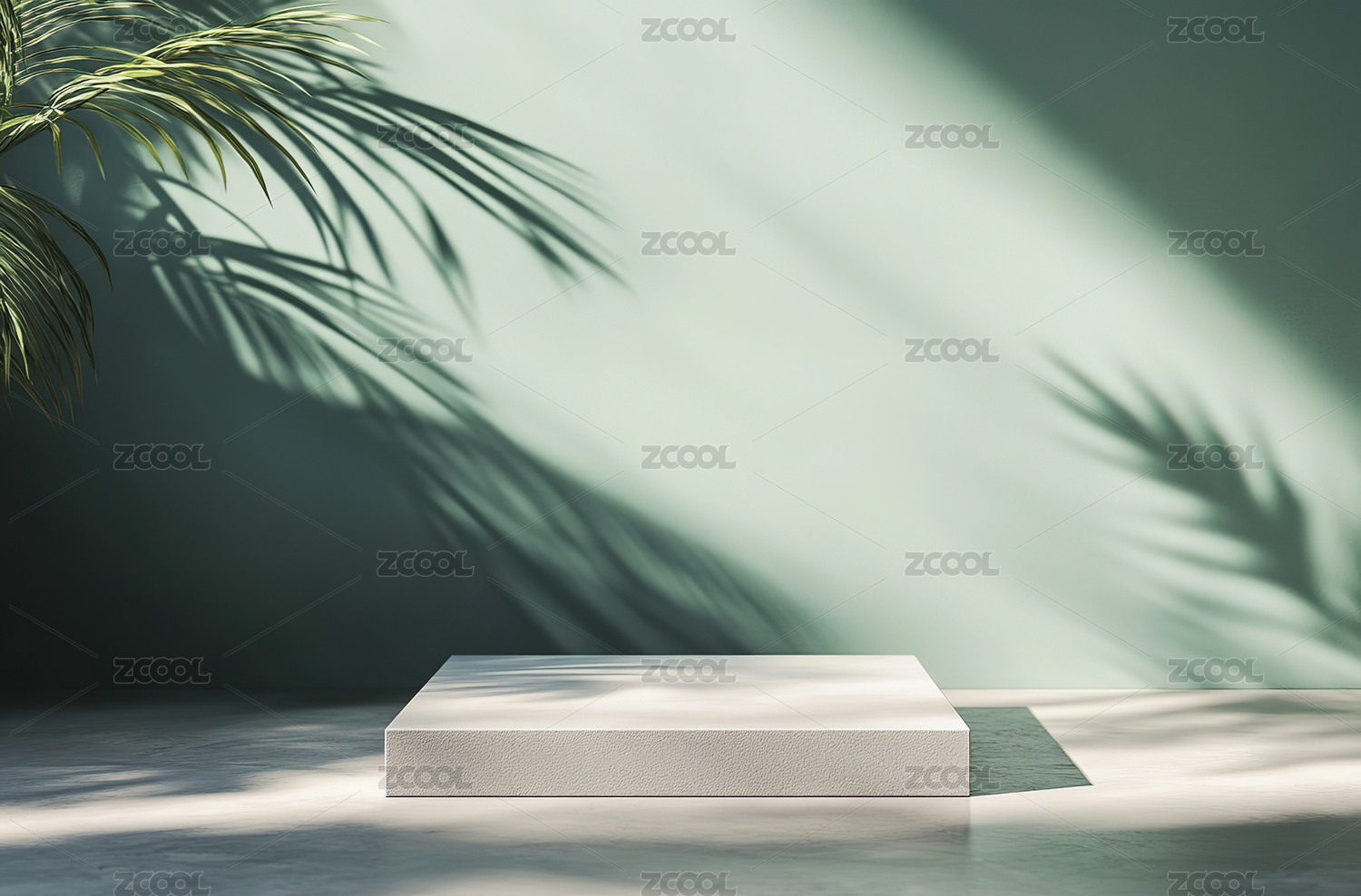 带有绿植和阳光的电商产品展示台
