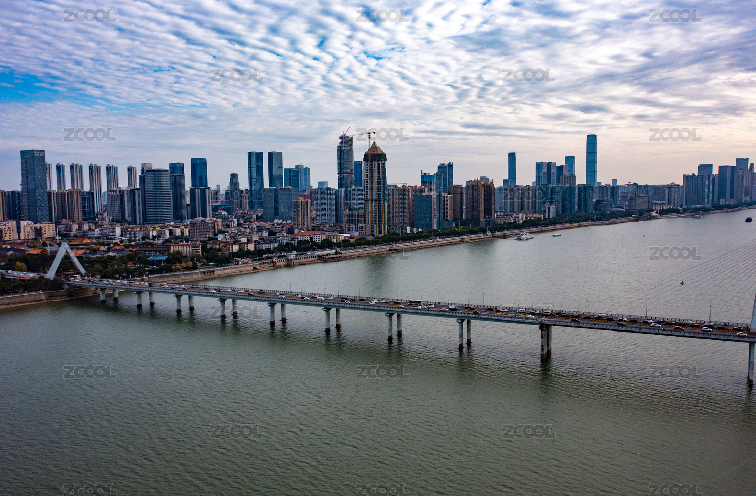 湖南省长沙市银盆岭湘江大桥航拍城市天际线