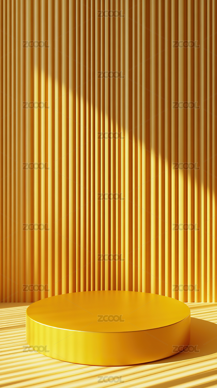 现代简约黄色墙面背景前的白色圆形展台