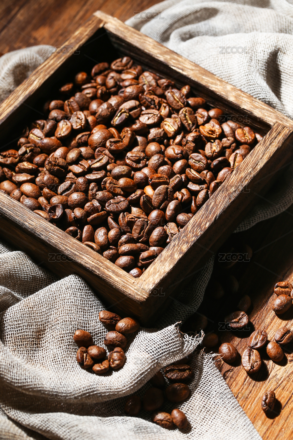 咖啡豆,咖啡,现磨,饮料,复古,木盒,散落,棕色,深棕,品质
