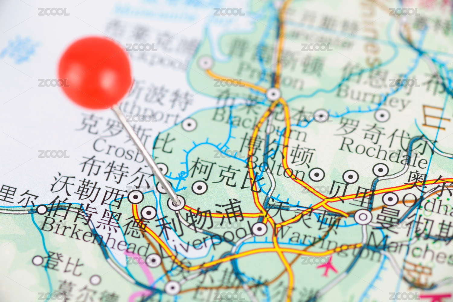 英国城市利物浦在地图上的位置标注