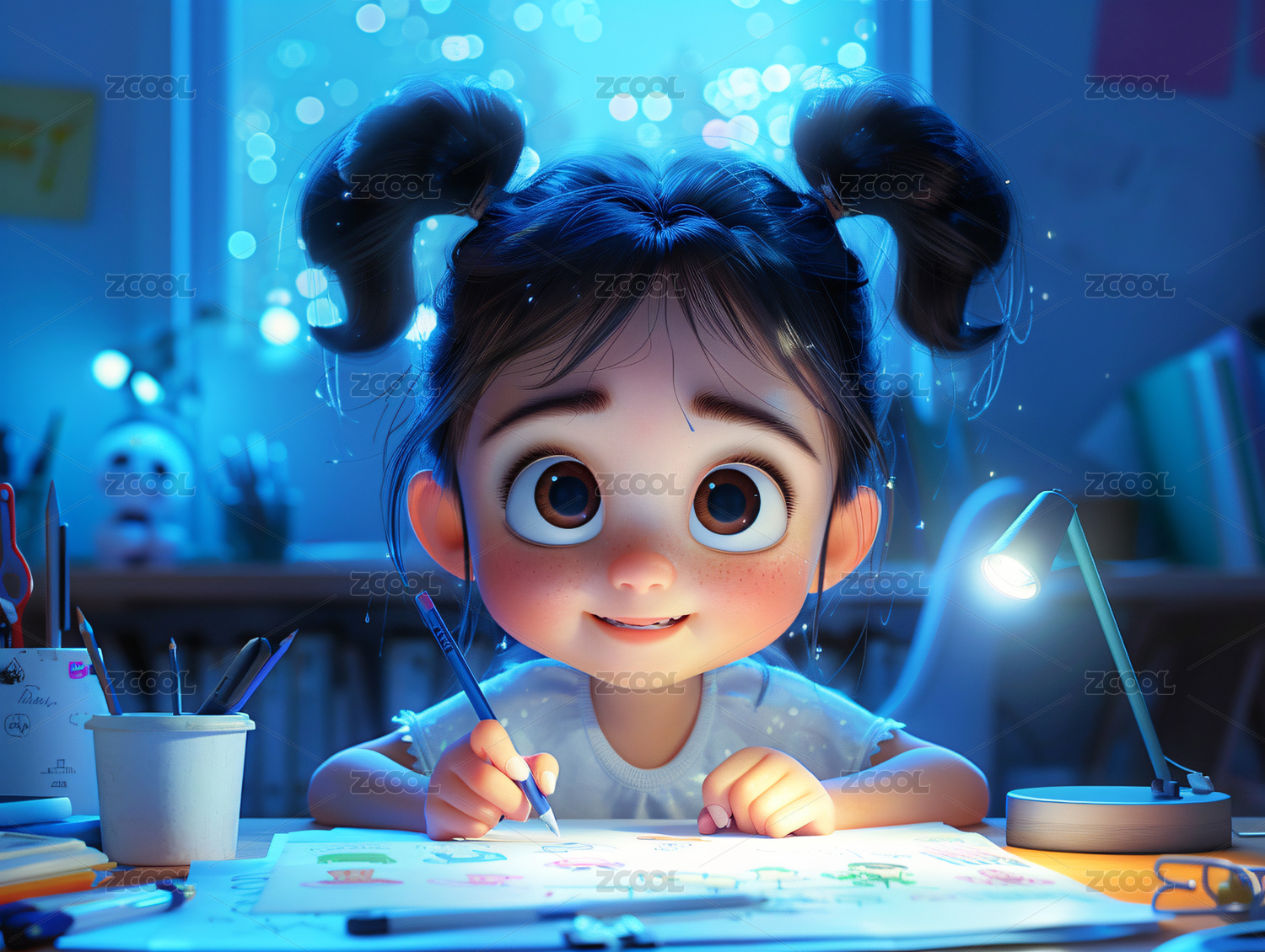 家庭作业,童年,学习,书桌,桌子,女孩,知识,台灯,室内,个人