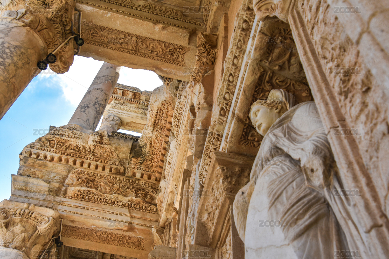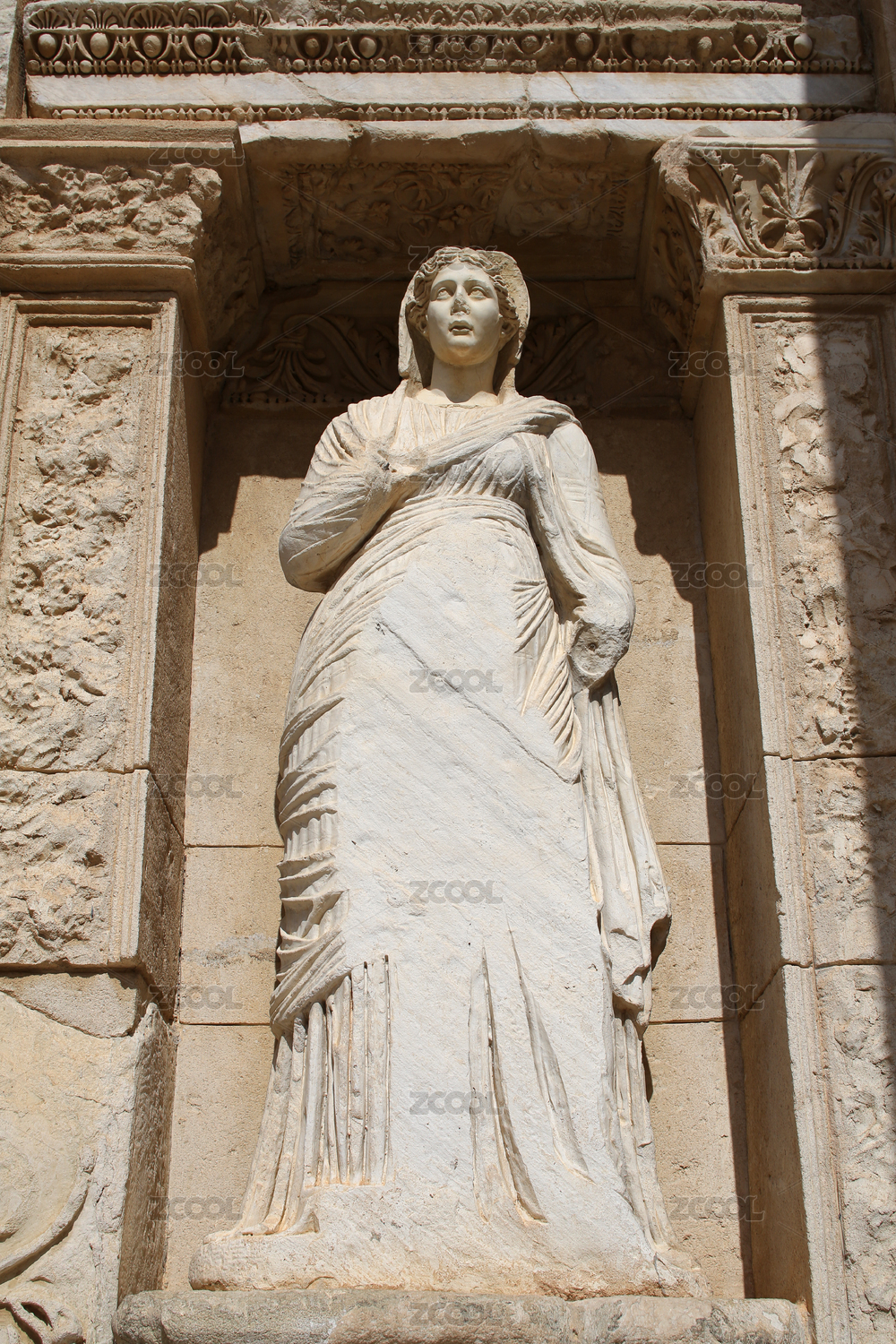 土耳其小亚细亚以弗所古城遗址塞尔苏斯图书馆的雕像