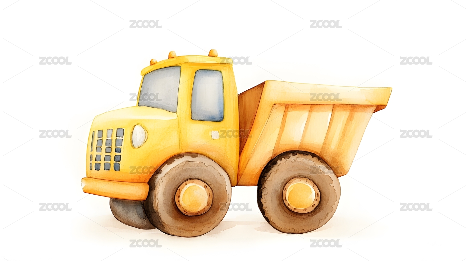 卡通工程车的水彩童趣