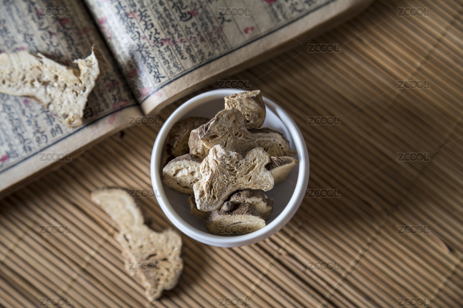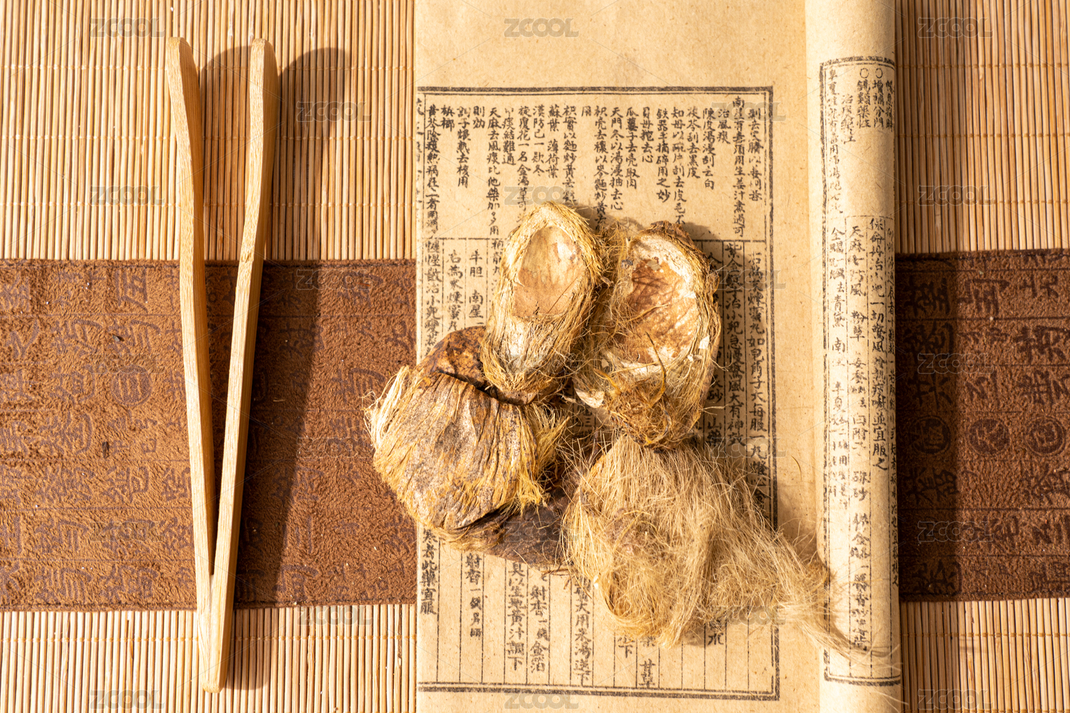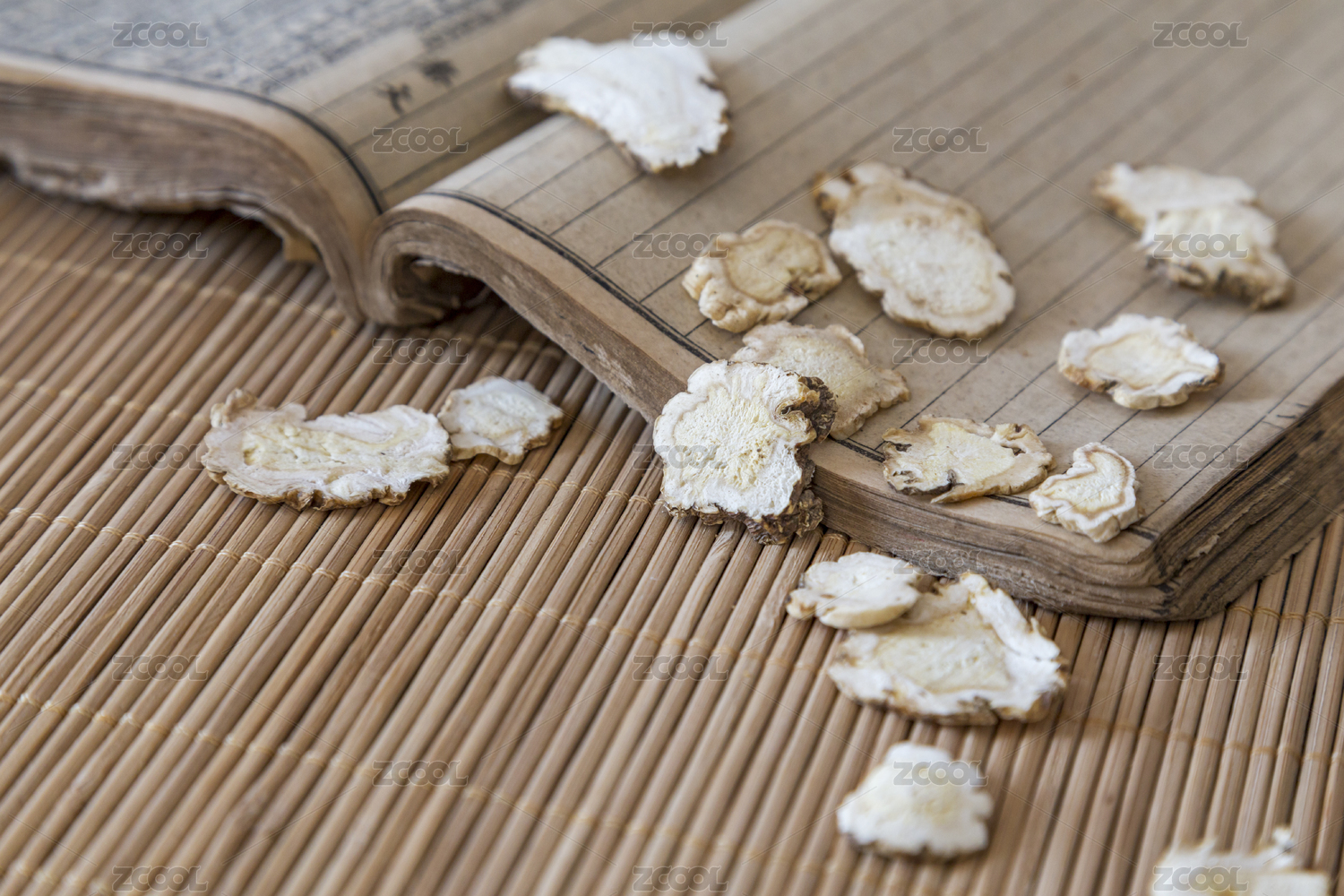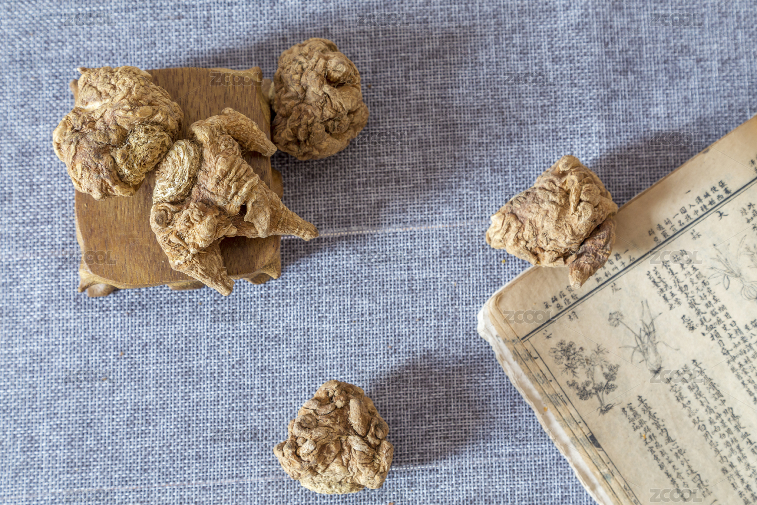 中国古风背景的中药白术特写
