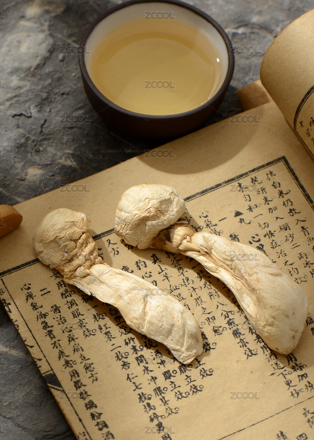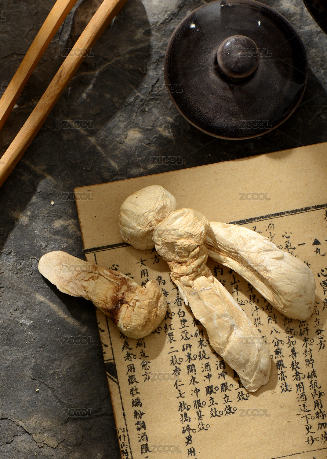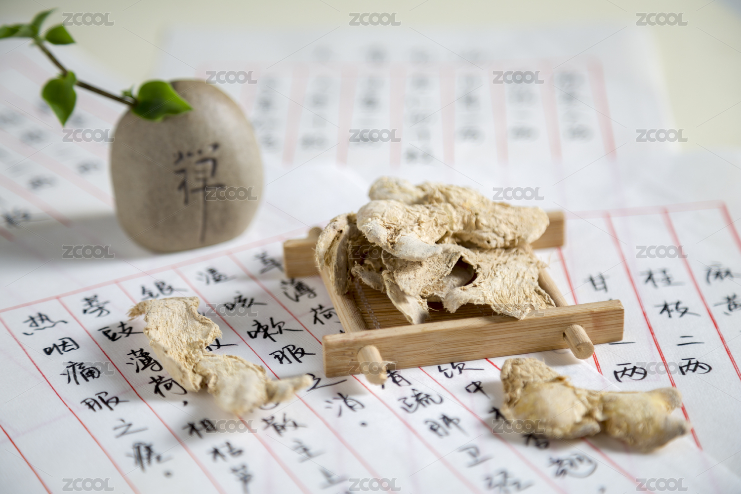 中国古风背景的中药炮姜特写