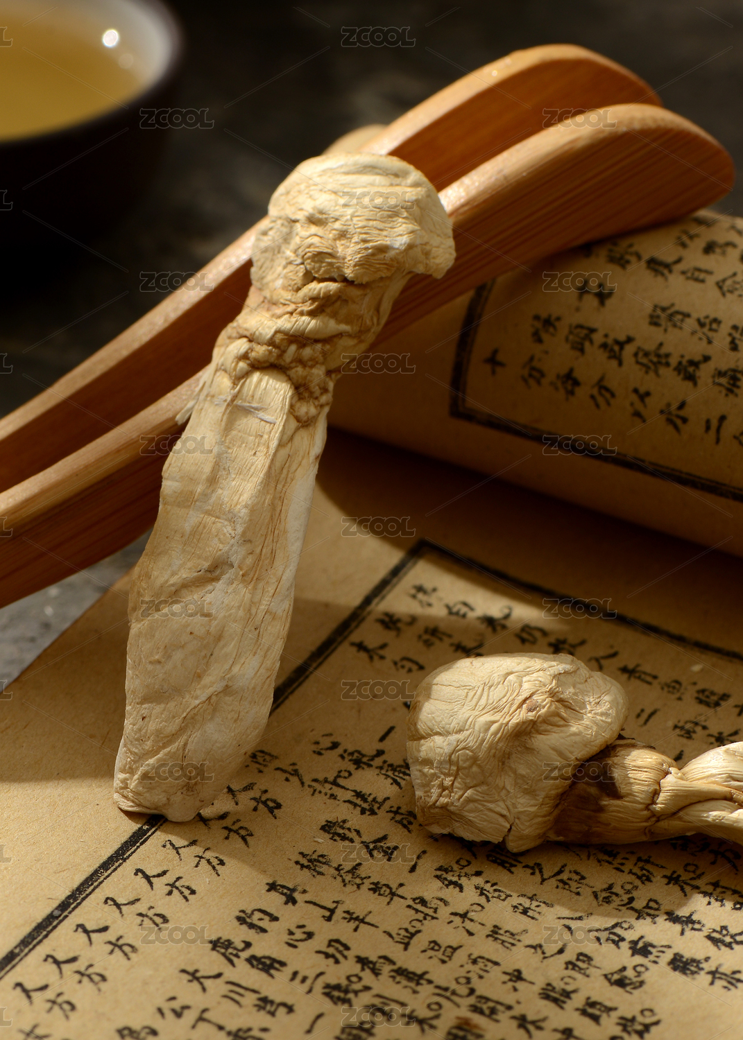 中式背景上摆放的野生松茸