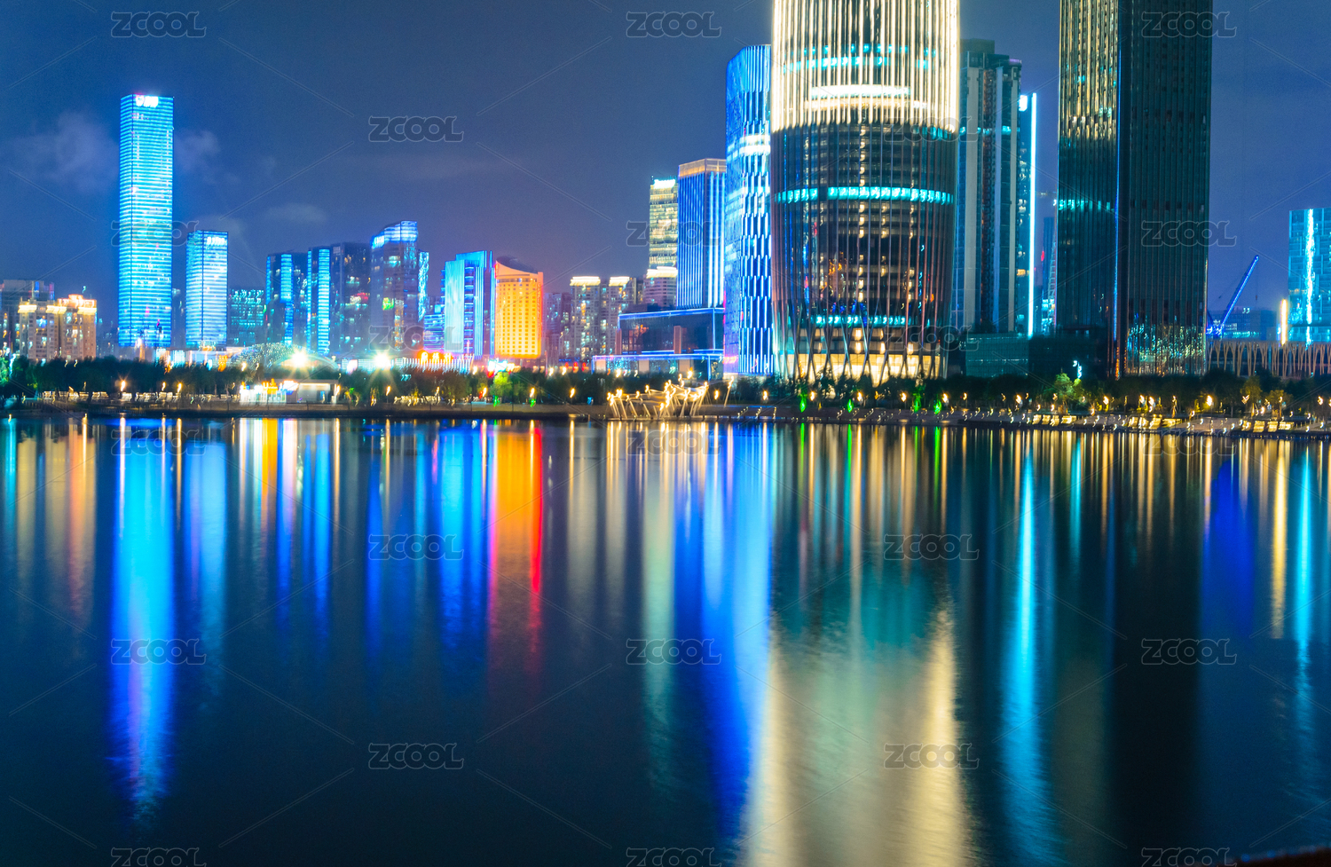 佛山千灯湖公园城市高楼建筑夜景灯光