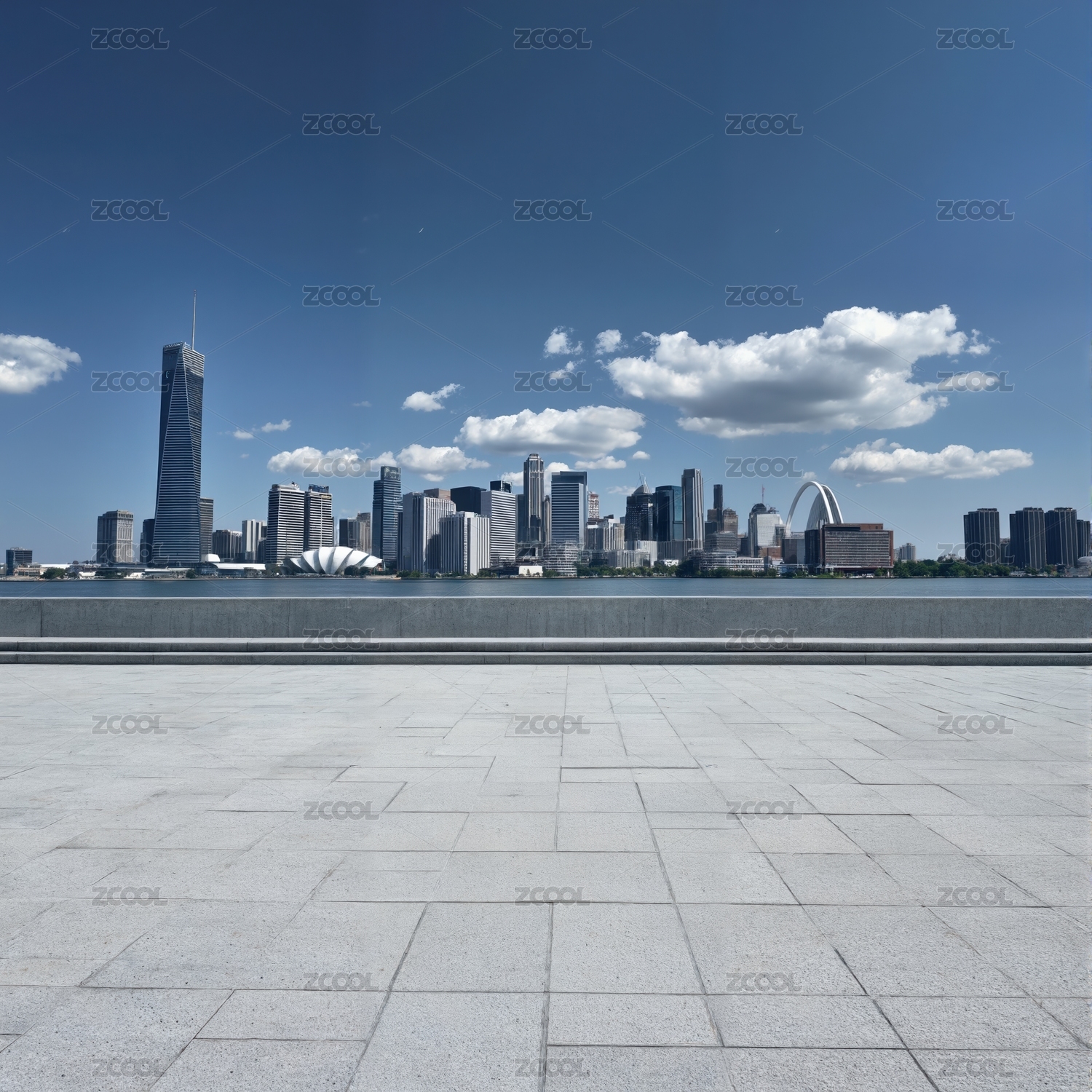 城市天际线与城市广场