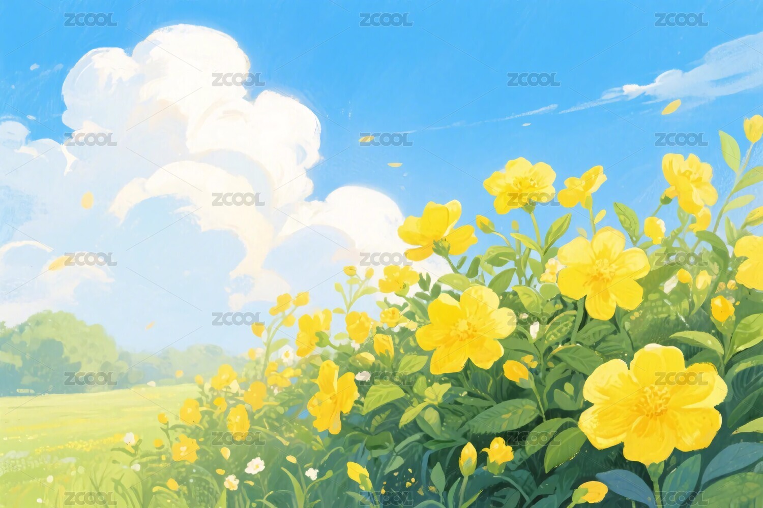 春日黄花与蓝天插画