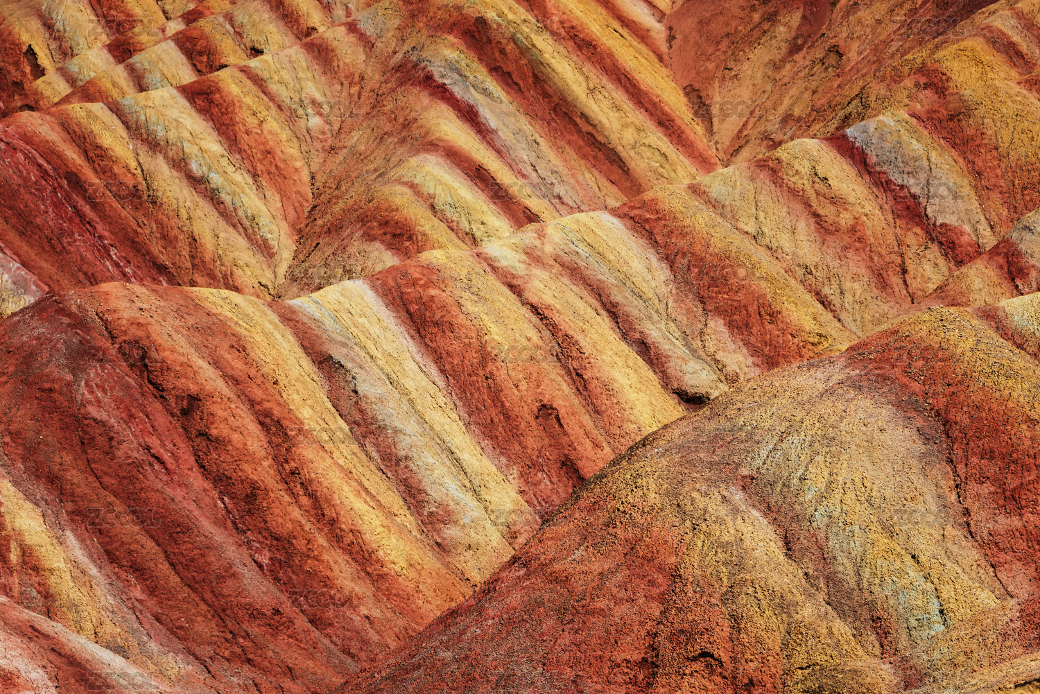 色彩鲜艳层次分明的中国兰州张掖丹霞地貌