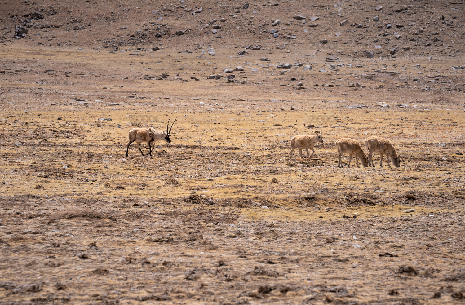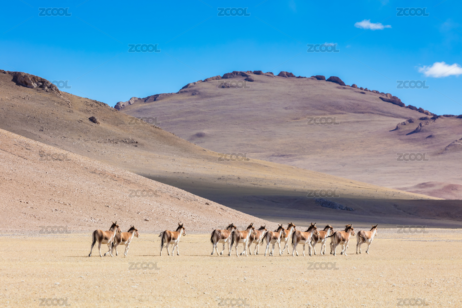 中国西藏那曲尼玛县羌塘草原上奔跑的藏野驴