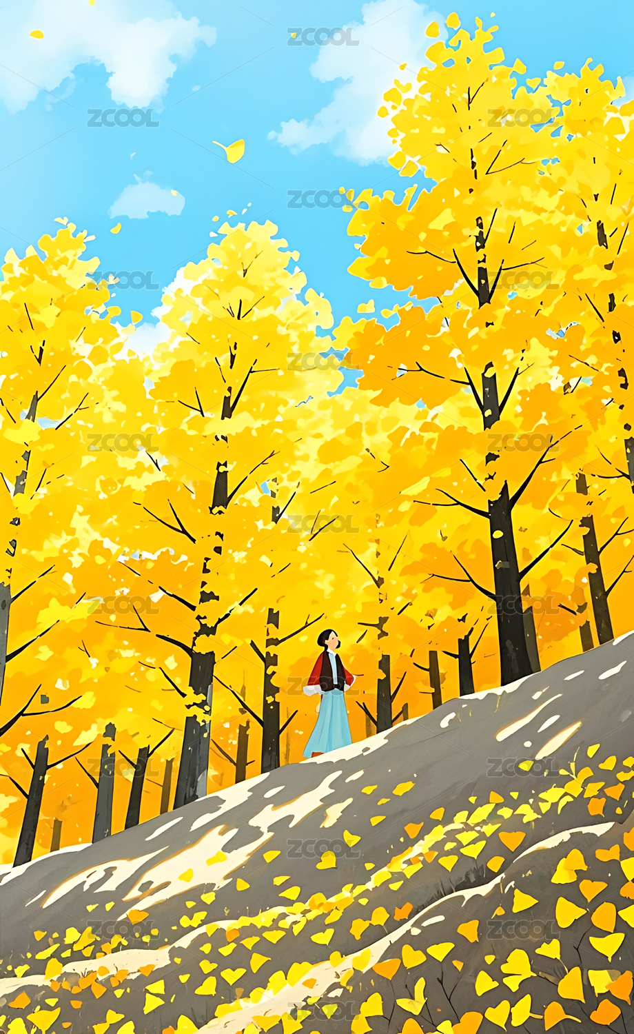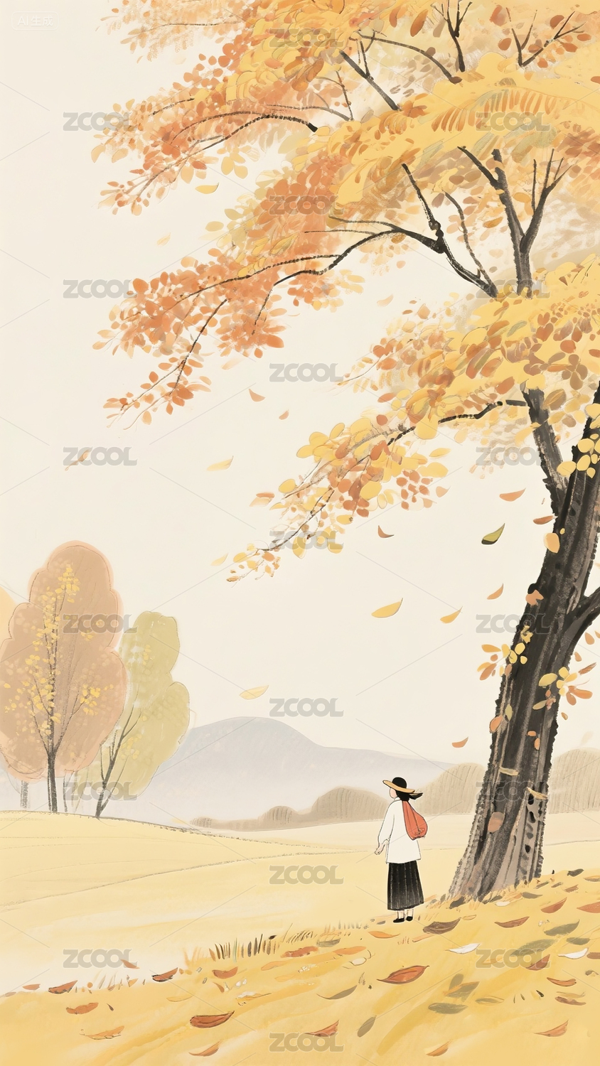 秋天,金色,插画,草原,麦田,入秋,寒露