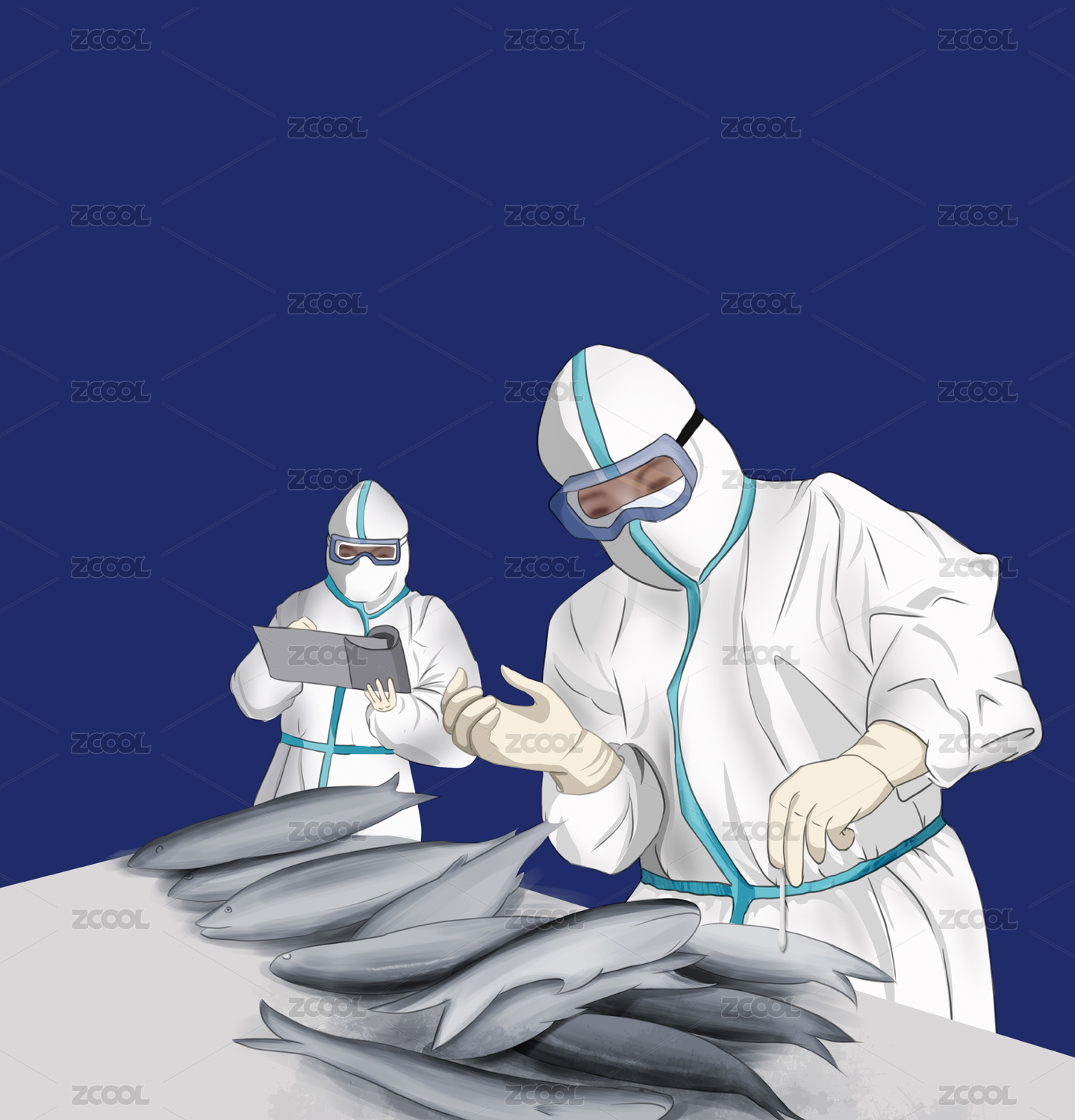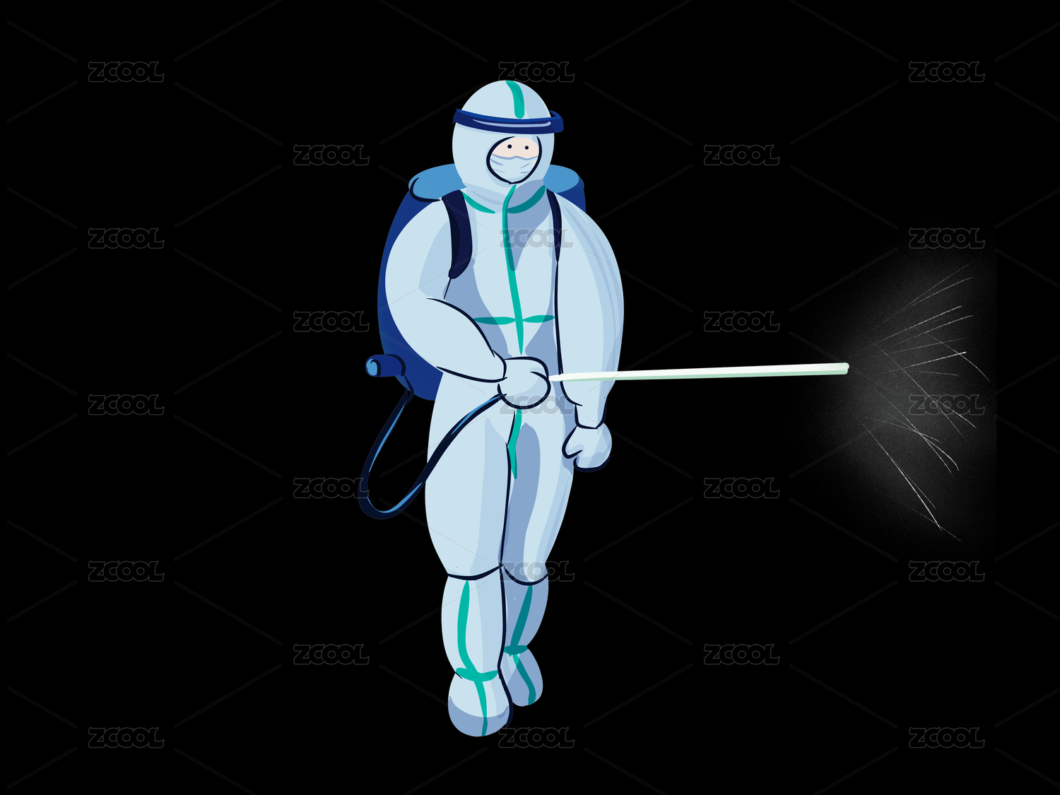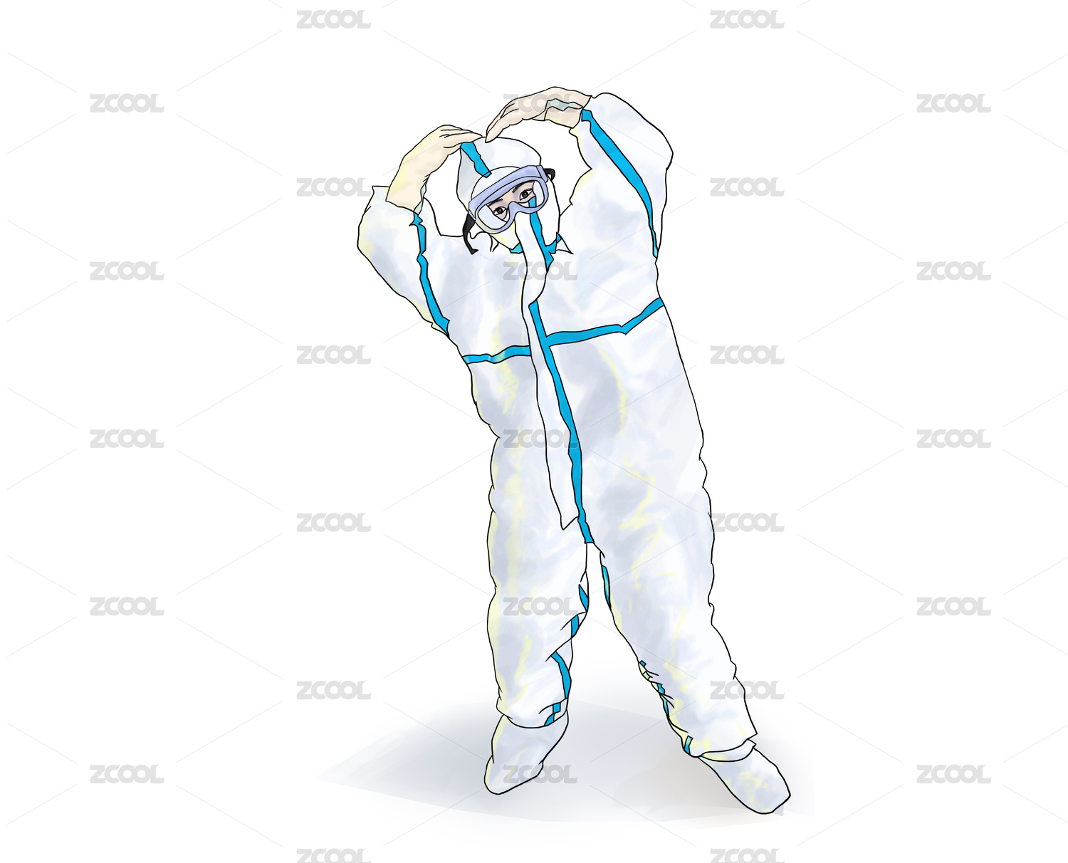 穿防护服防疫抗疫人员手绘插画