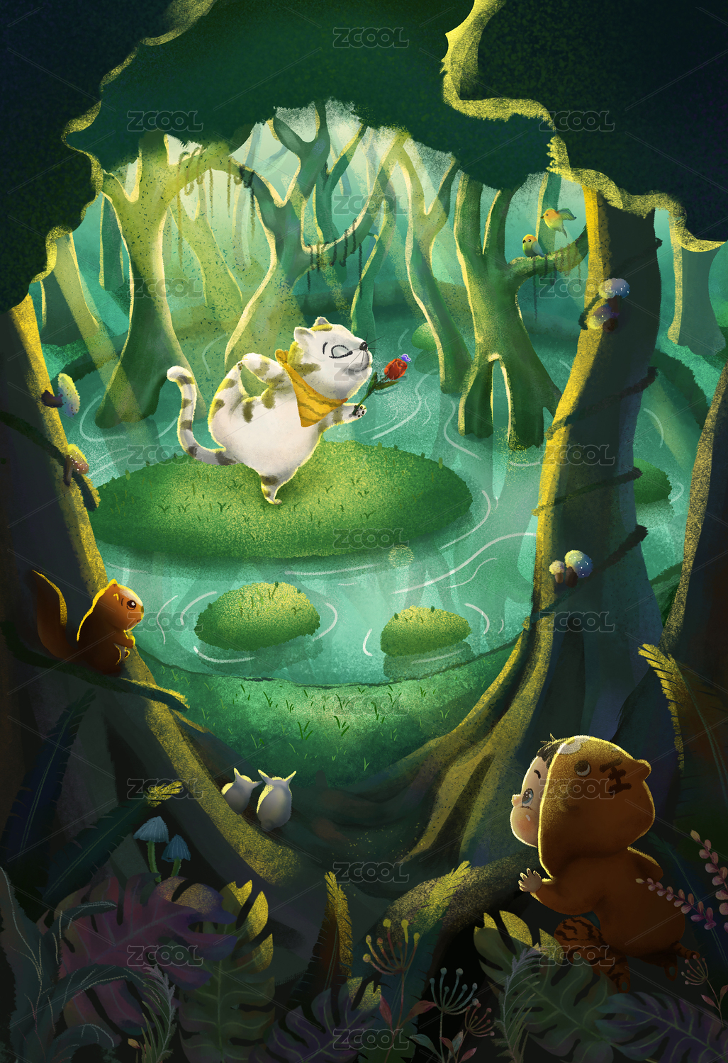 梦幻森林小精灵场景插画