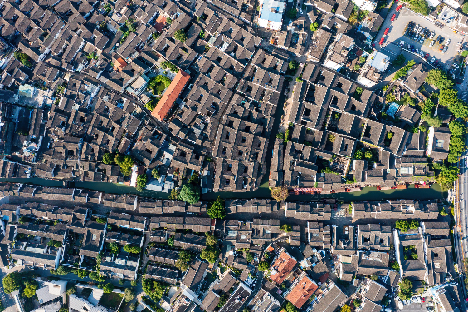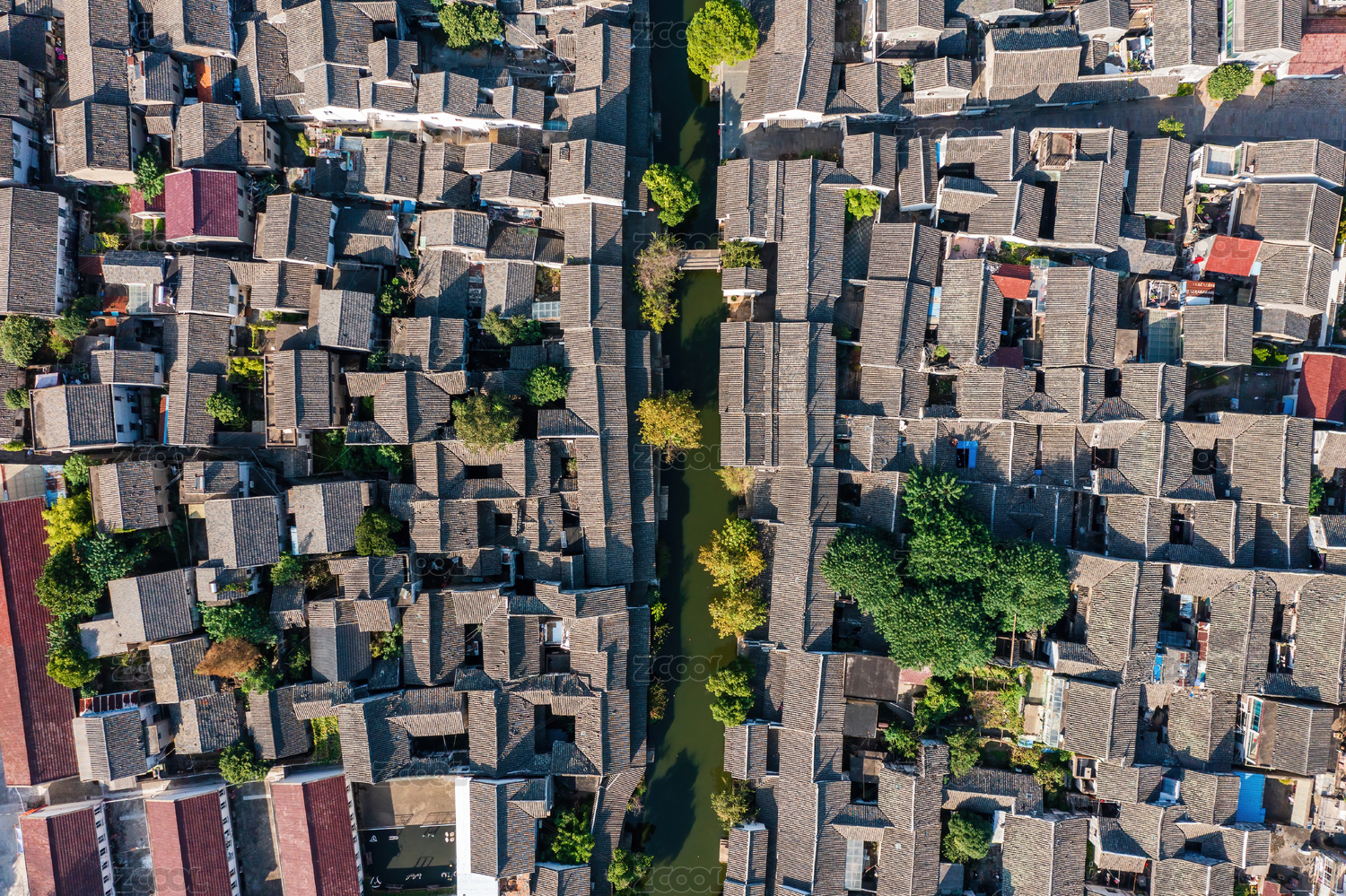 航拍苏州平江历史文化街区平江路白墙黛瓦