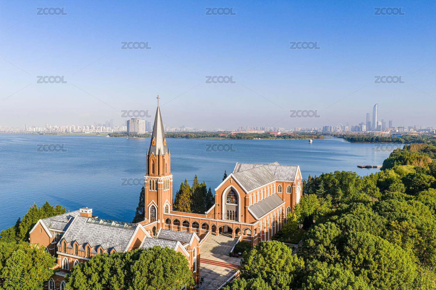 中国江苏苏州独墅湖基督教堂秋季航拍