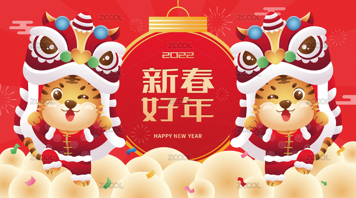 2022年两只老虎敲锣打鼓过新年