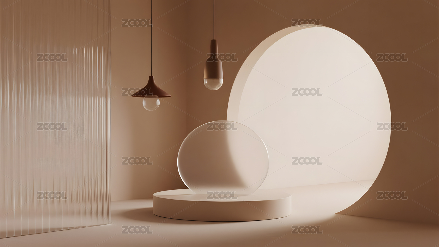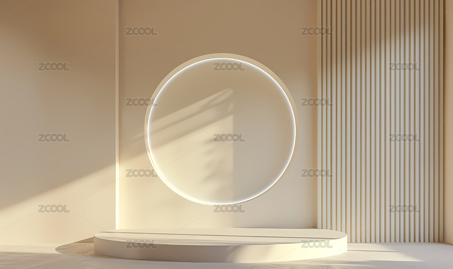 艺术,干净,空间,室内,建筑,金色,底座,展台,极简,光线