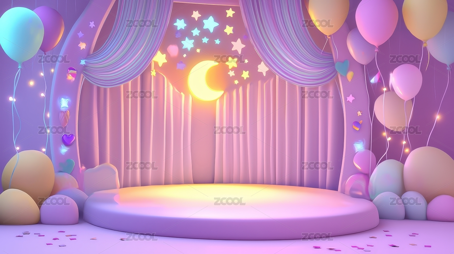 舞台,灯光,背景,设计,月亮,渲染,梦幻,云朵,装饰,粉色