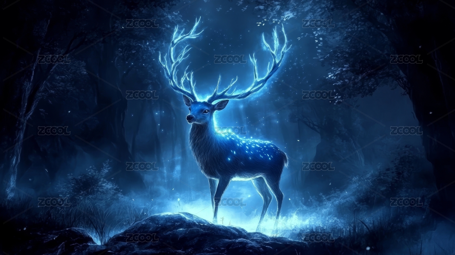 神秘复古炫彩灯光下的麋鹿头像装饰画