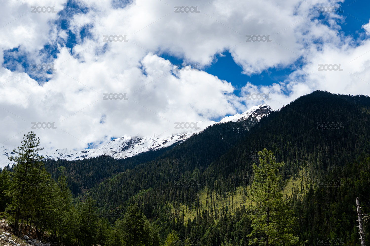 中国西藏林芝波密古乡巴卡村的雪山松林