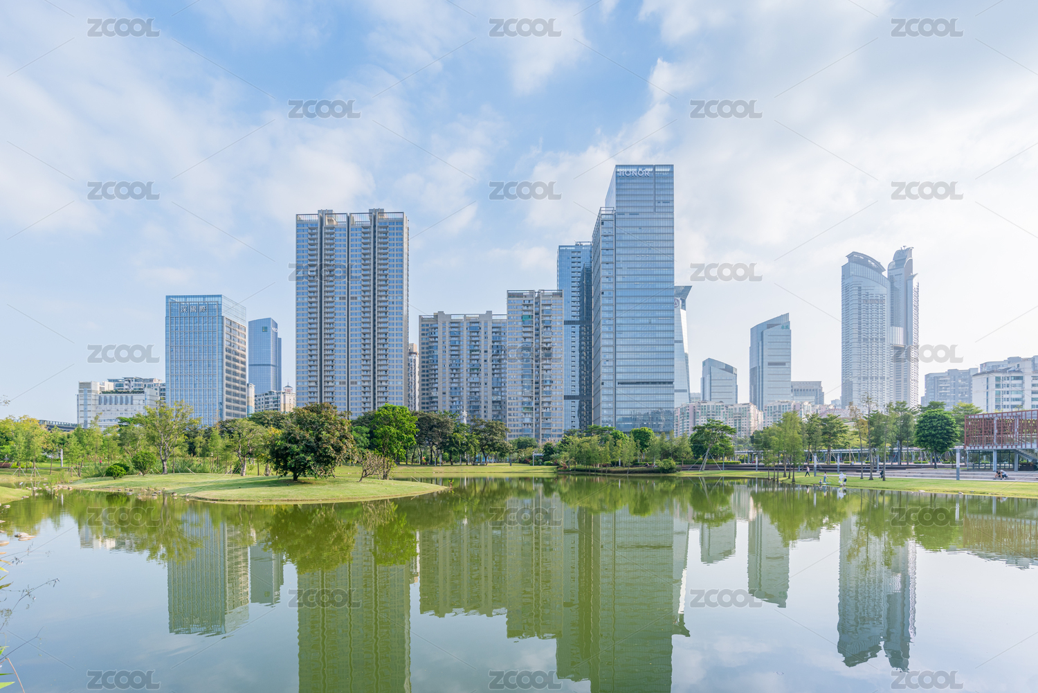 深圳香蜜公园湖水和建筑倒影