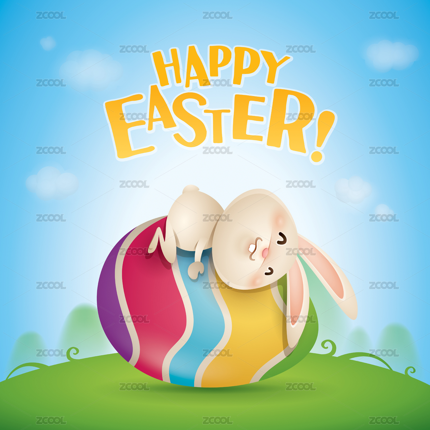 欢乐复活节主题背景可爱小兔子和彩蛋