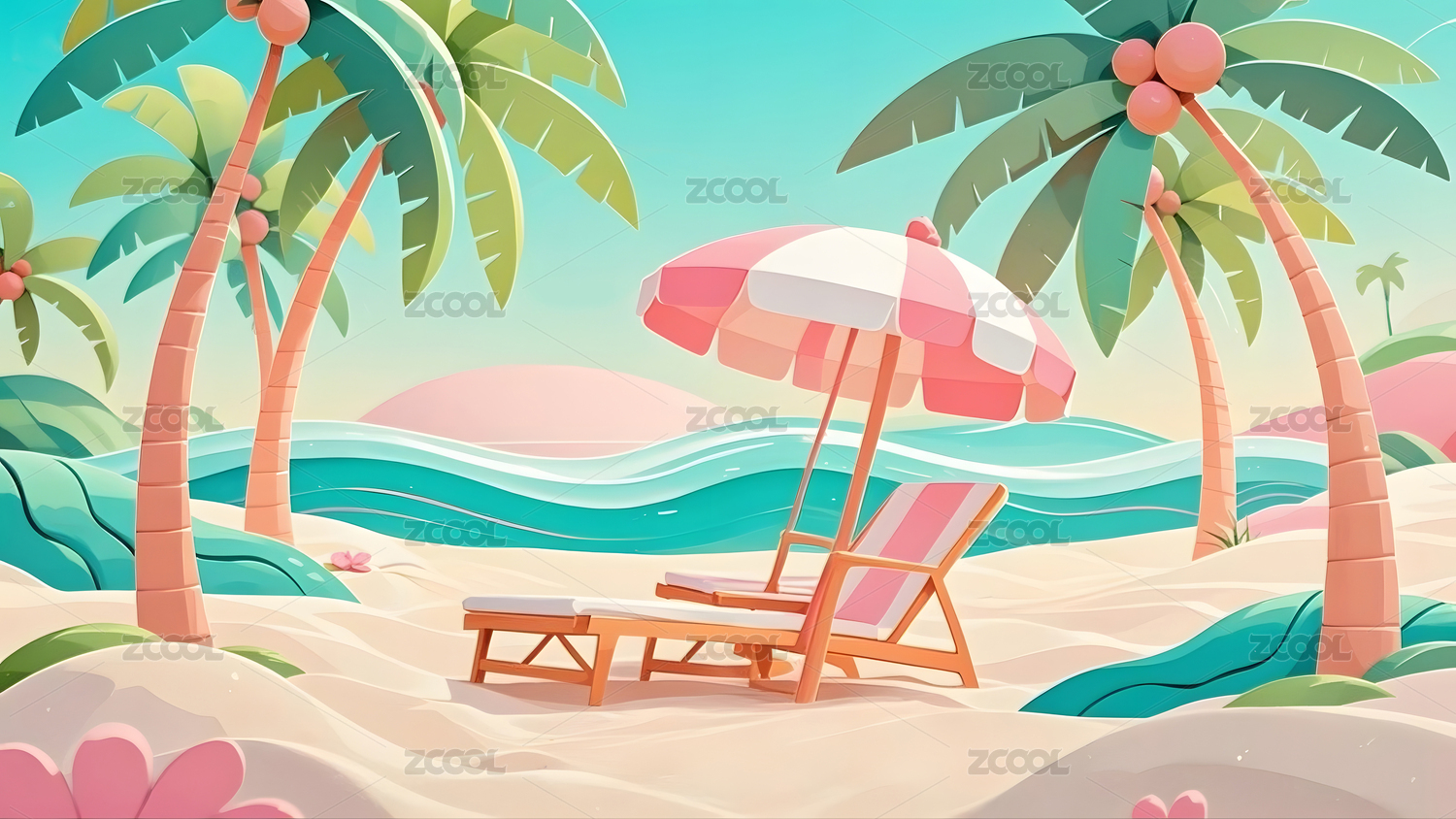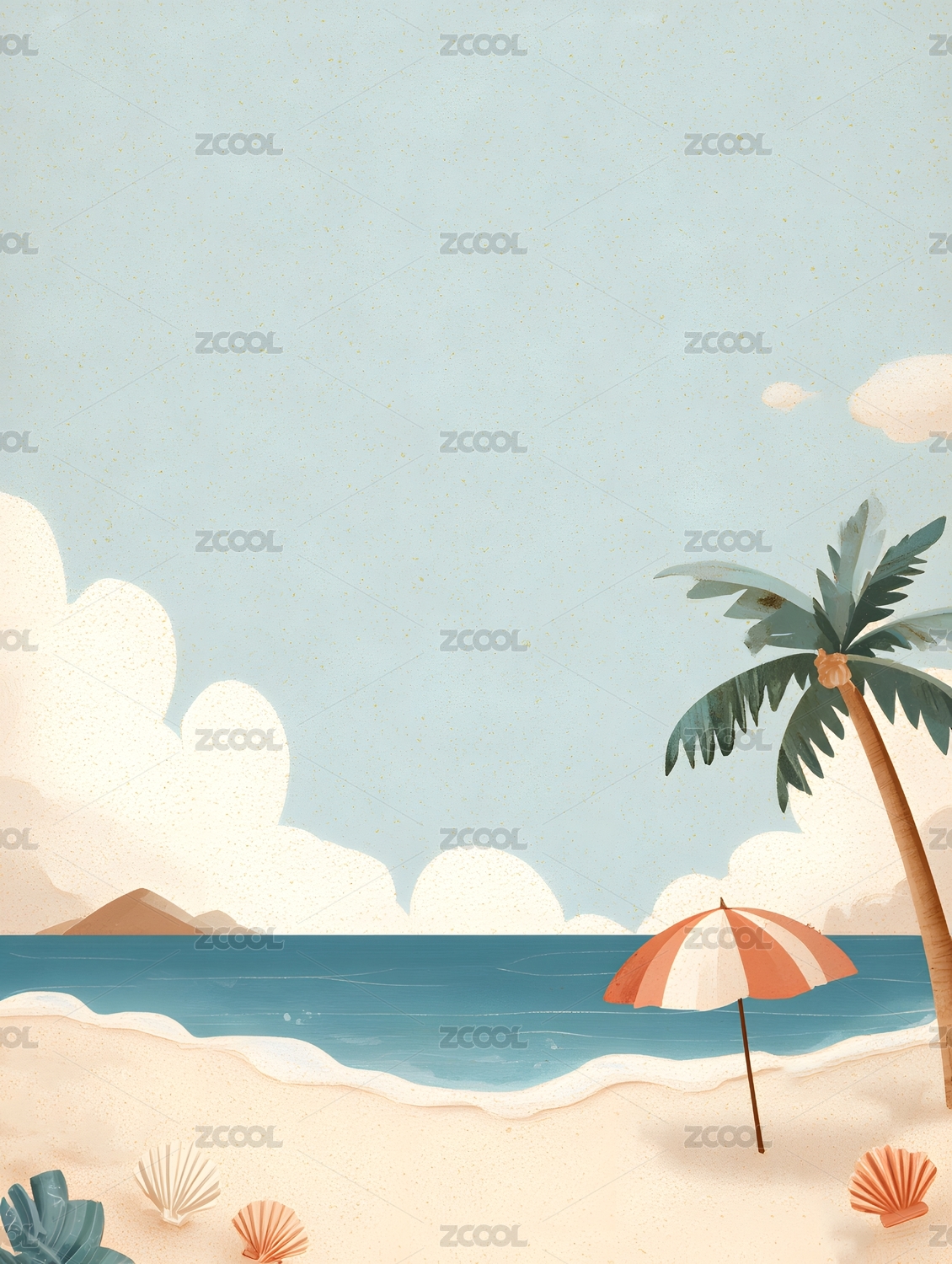 大暑节气海边旅行夏季海滩度假避暑矢量插画