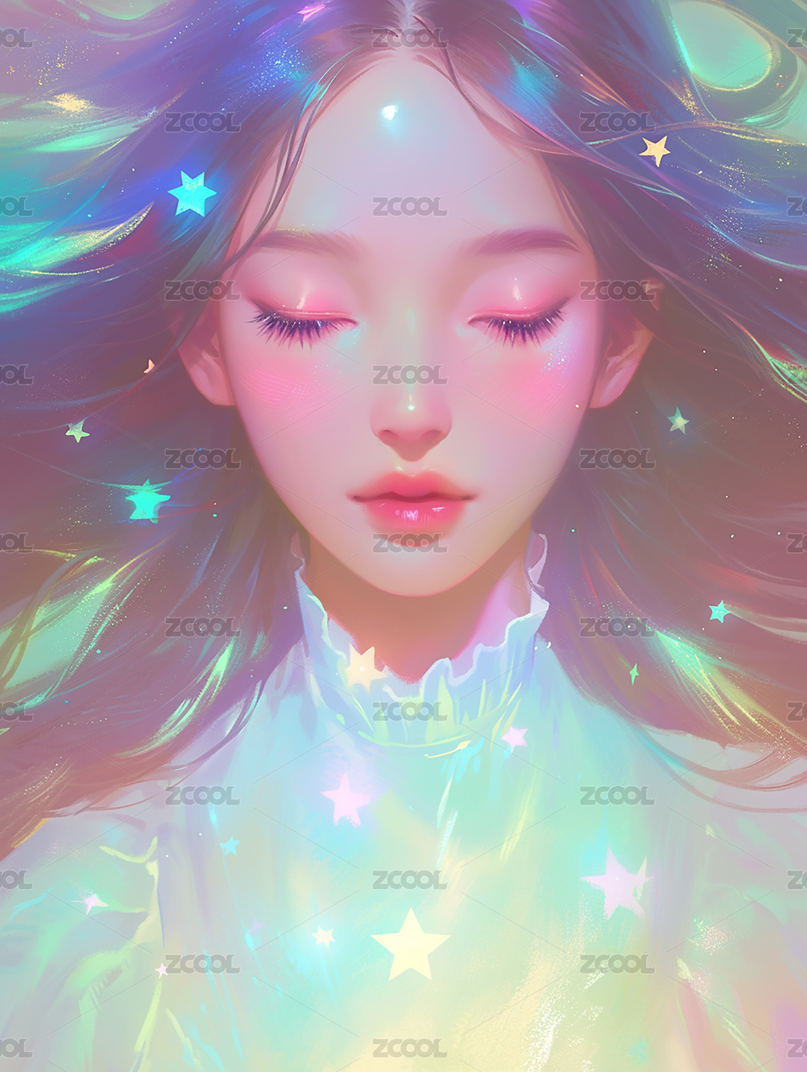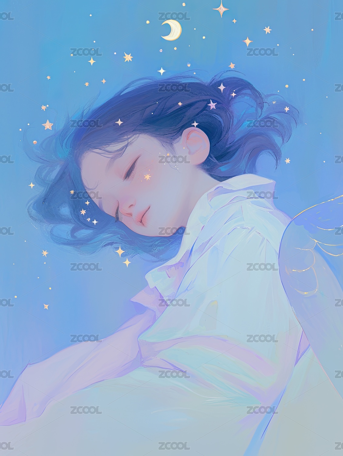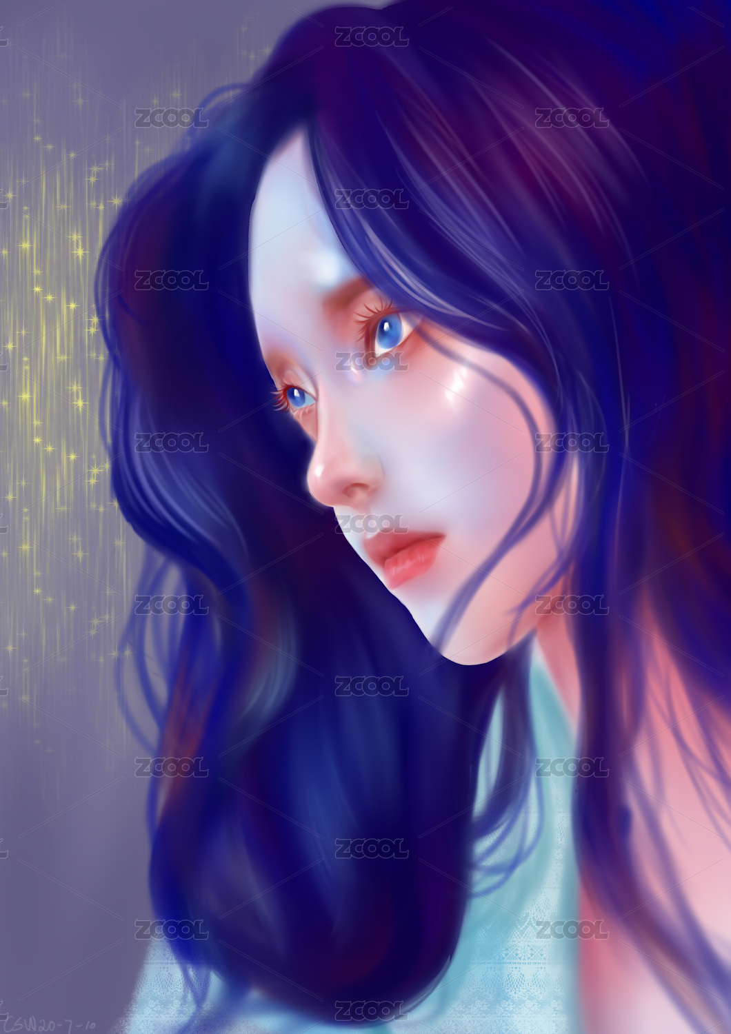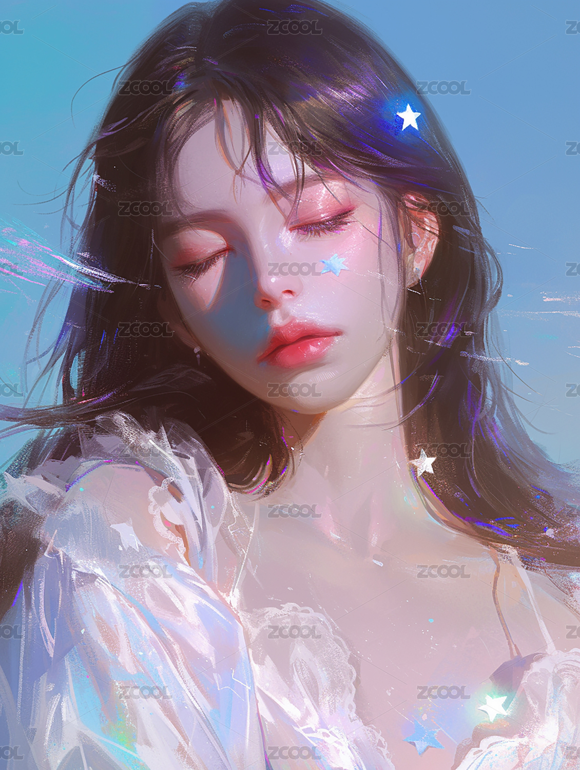 女孩,女生,闭眼,少女,长发,竖构图,美女,插画