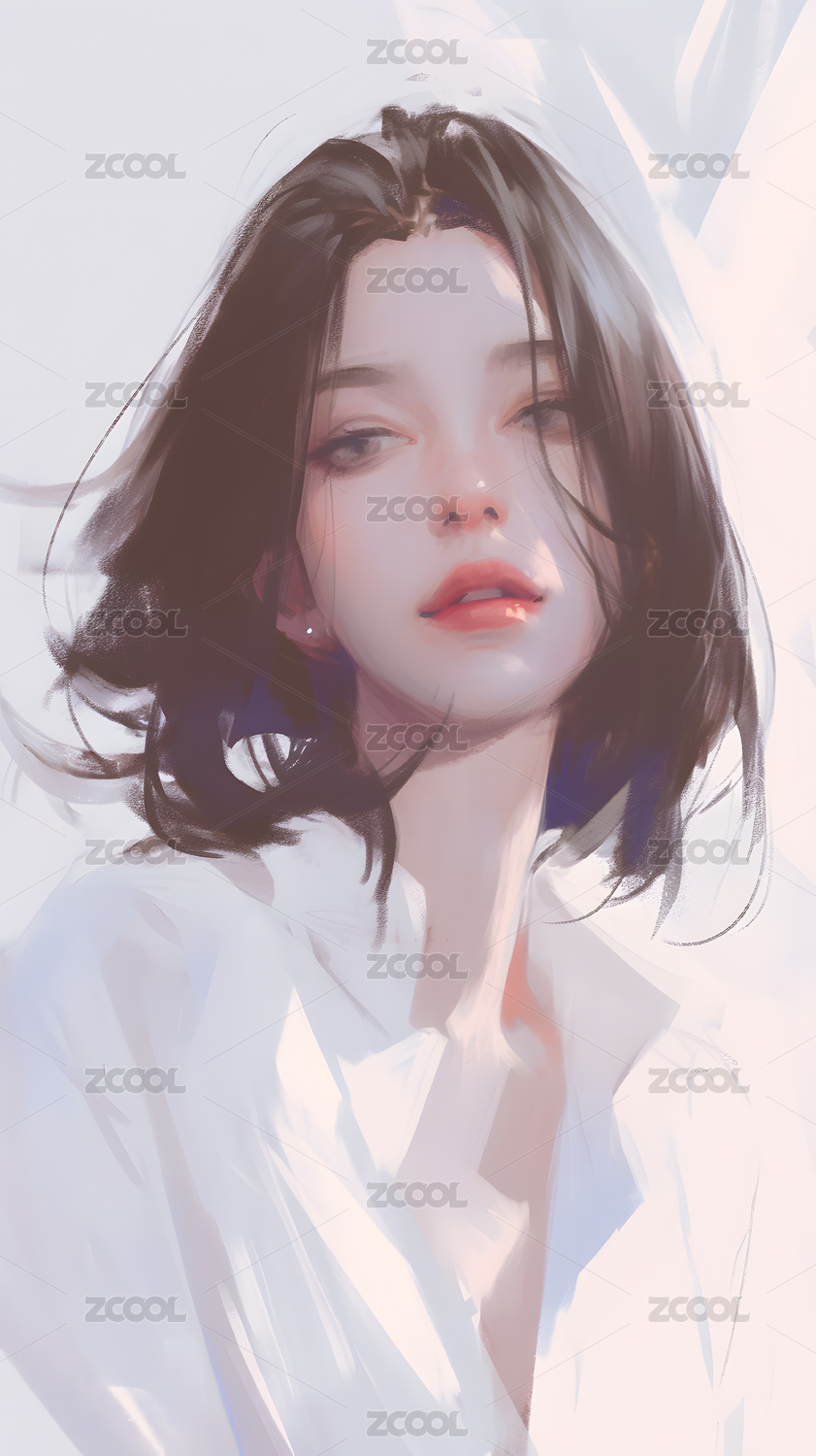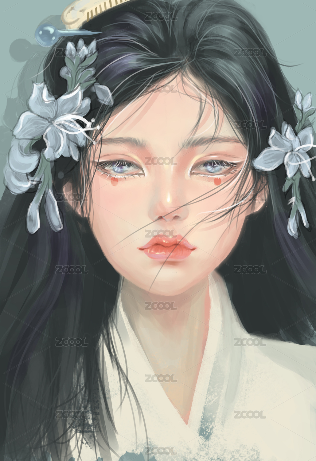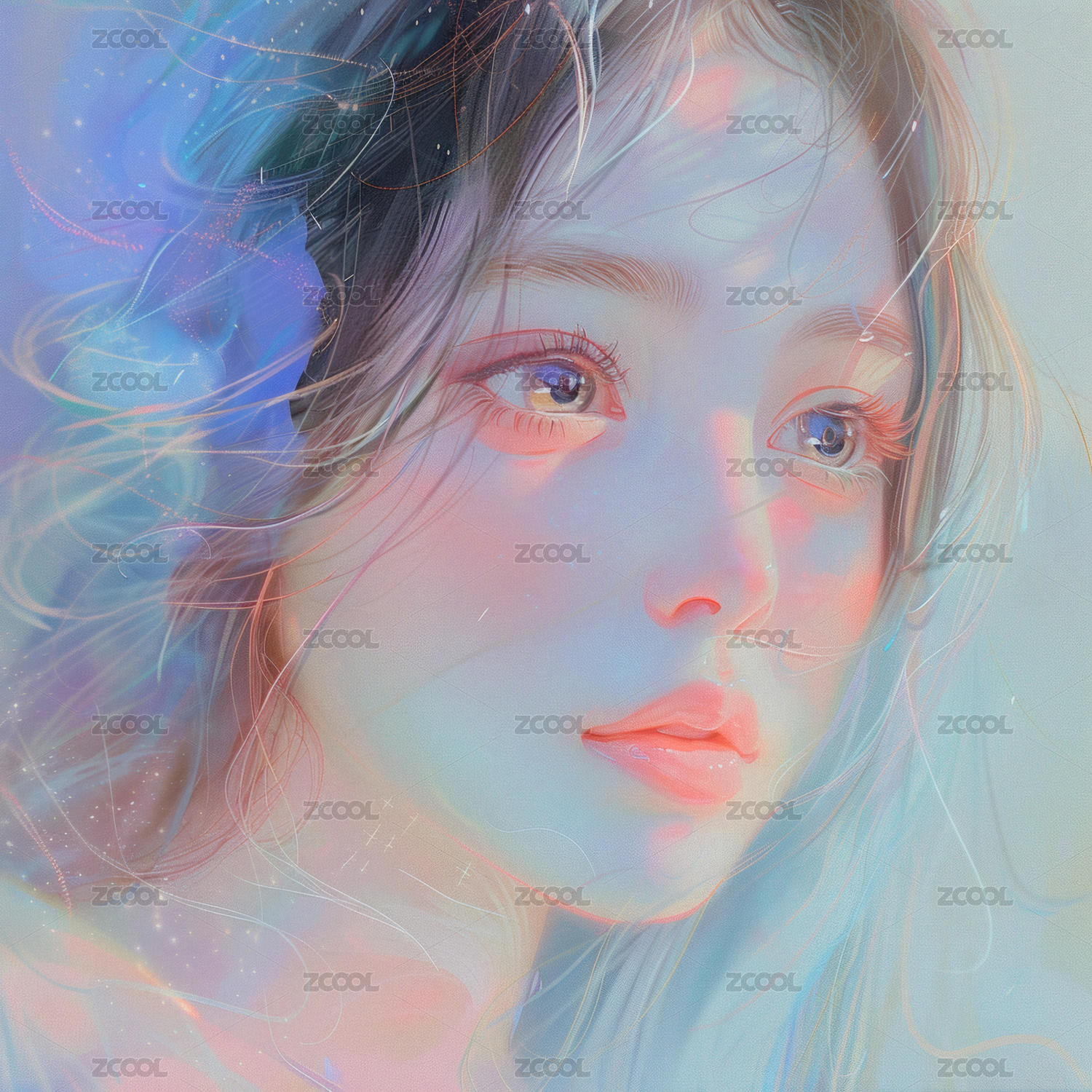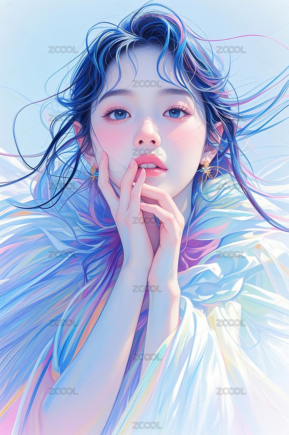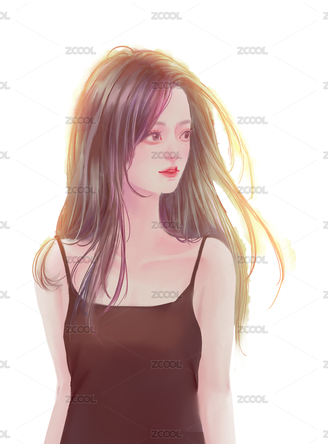 女孩,女生,闭眼,少女,长发,竖构图,美女,插画