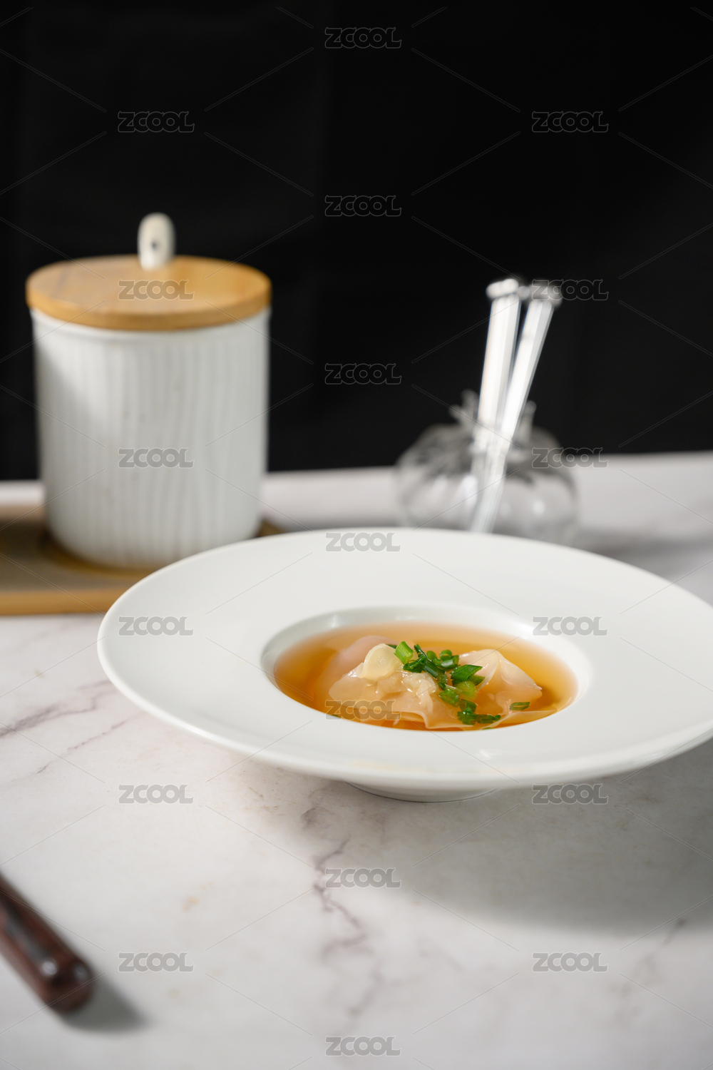 桌面上的盘子里的美味可口的清汤白玉云耳