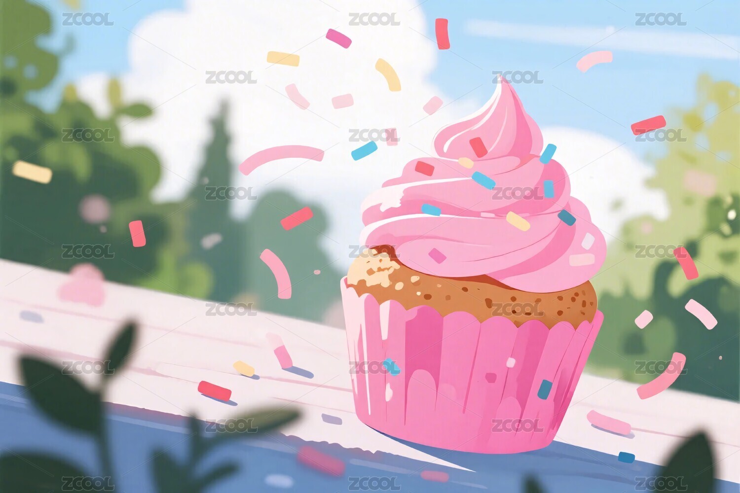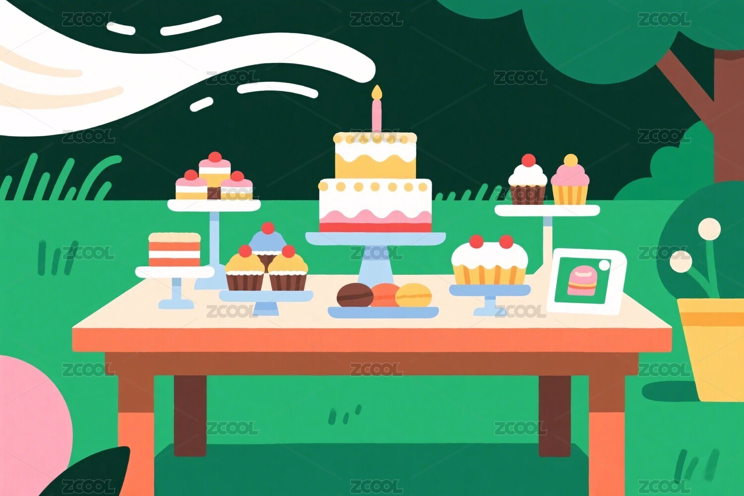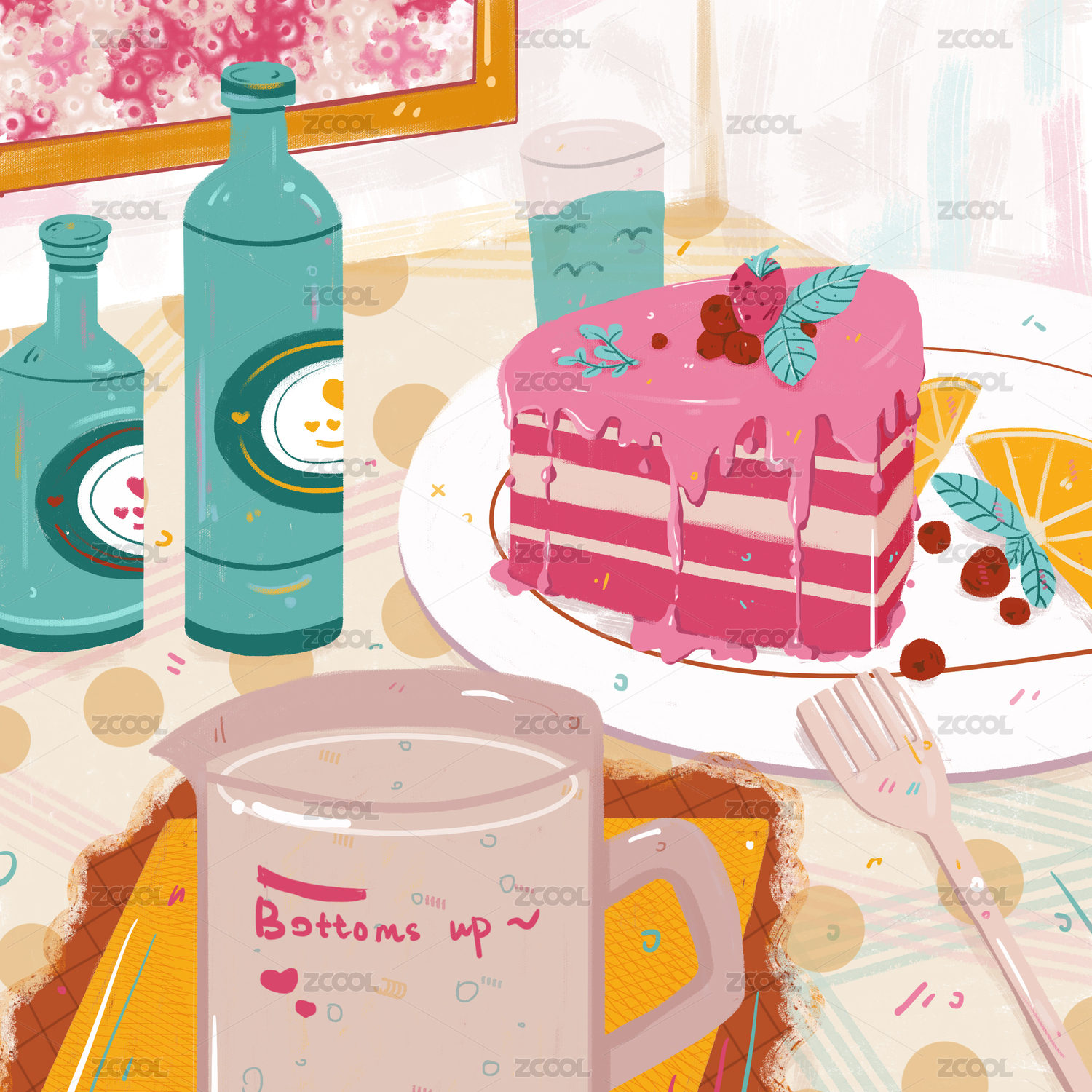 牛奶咖啡蛋糕下午茶简约扁平风时尚插画
